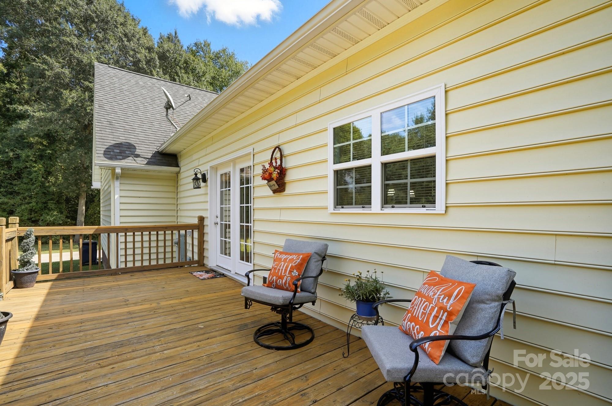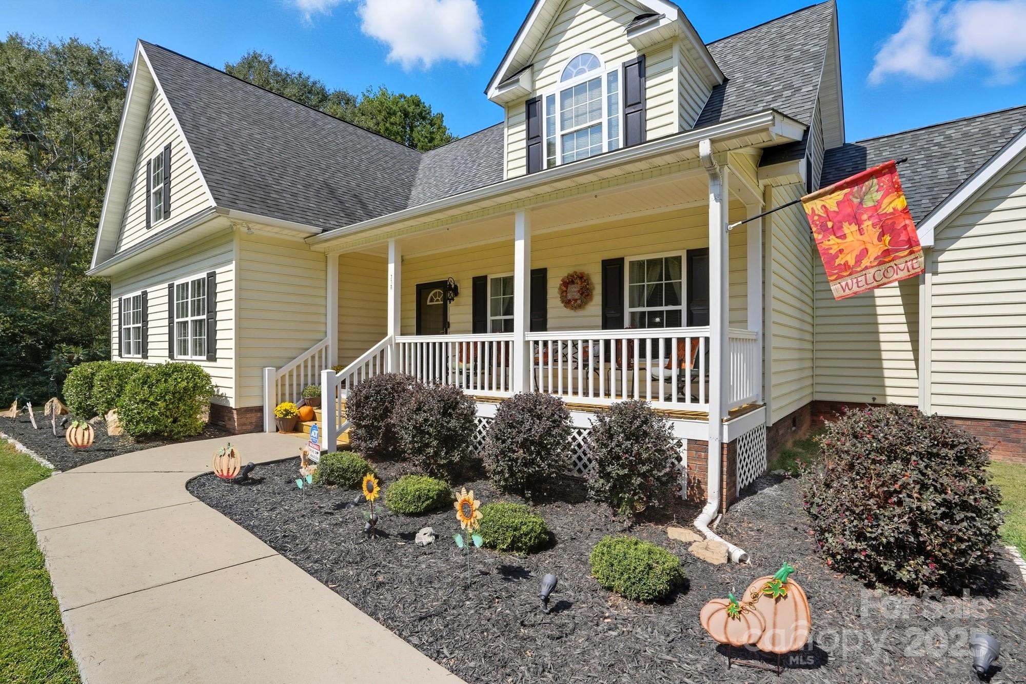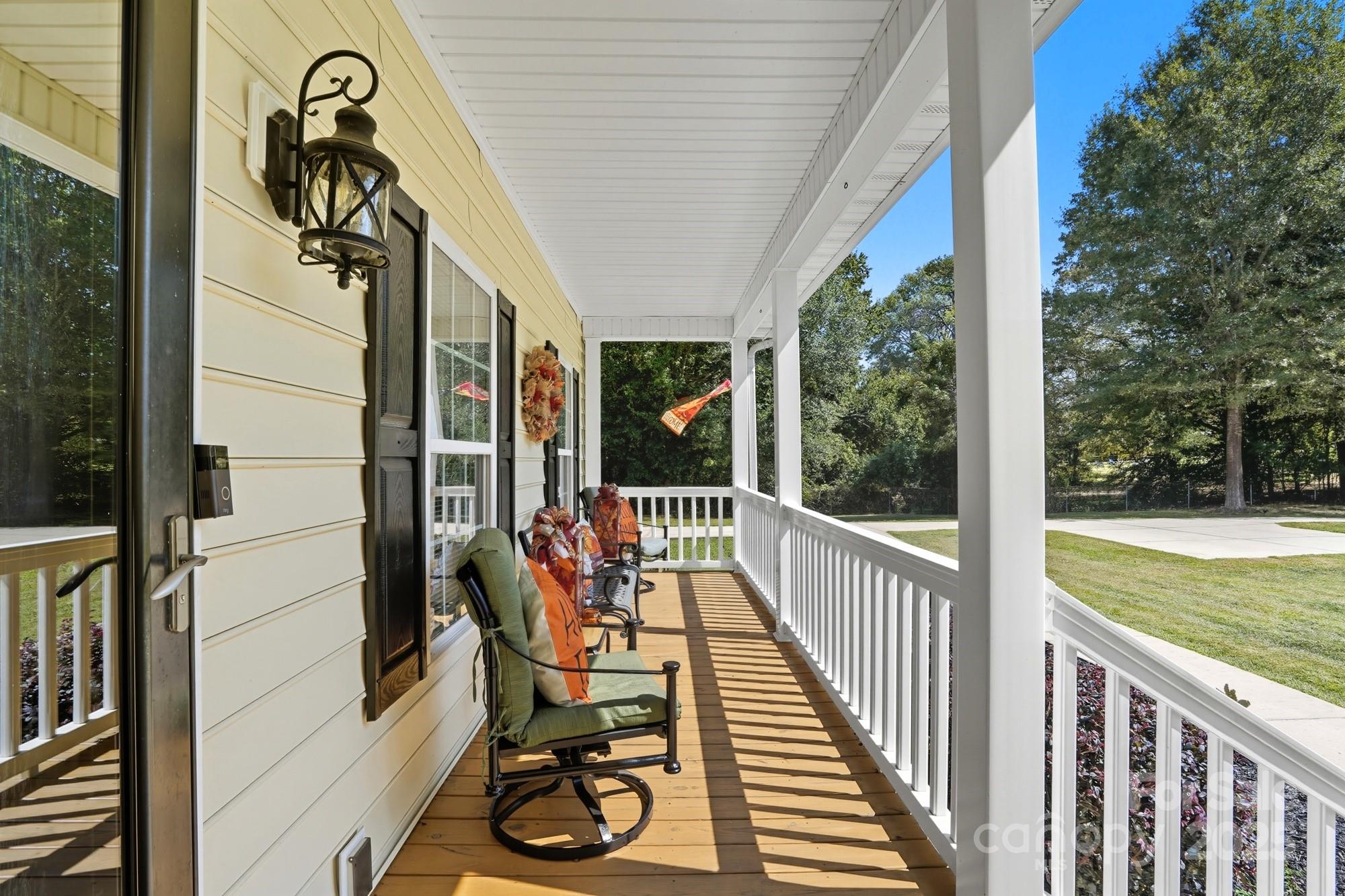 Welcome home to this one owner home on almost an acre home site that has been well cared for and nestled privately just outside Charlotte minutes from 485 and other major roadways, shopping & dining. Schedule your appointment to view because this home has too many features to list them all here. Our favorite features include, NO HOA DUES, the large front porch and deck roomy enough to hang out with family and friends that was refreshed in 2025, large garage with attic access that has been floored and braced for extra storage, updated neutral paint throughout in 2025, water heater updated 2021, HVAC updated in 2017 and 2025, connected great room, dining, and kitchen with large island for prep and entertaining with a window overlooking the backyard, spacious primary suite with TWO walk-in closets and en suite bath with framed mirrors, 2 sinks, water & linen closets, and separate garden tub & shower, comfort height toilets and updated plumbing fixtures, media room with surround sound, the upstairs rooms have added character with nooks, this home also has flood lights, ring doorbell, an inside camera and outside cameras. The washer and dryer, some furniture, and more can remain with acceptable offer. Sellers recently had septic pumped 11/25 with the septic upgrade and garage door serviced in 2025 as well.