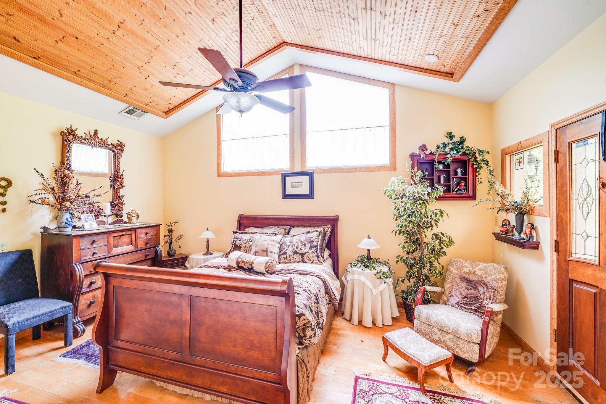 The inviting living area is anchored by a gas log fireplace, while the primary suite offers a private retreat with a dual vanity, walk-in shower with tile surround, and generous storage. Two of the bedrooms enjoy large tea/sitting areas, perfect for relaxation, and the basement level provides a private bedroom with additional storage space.
