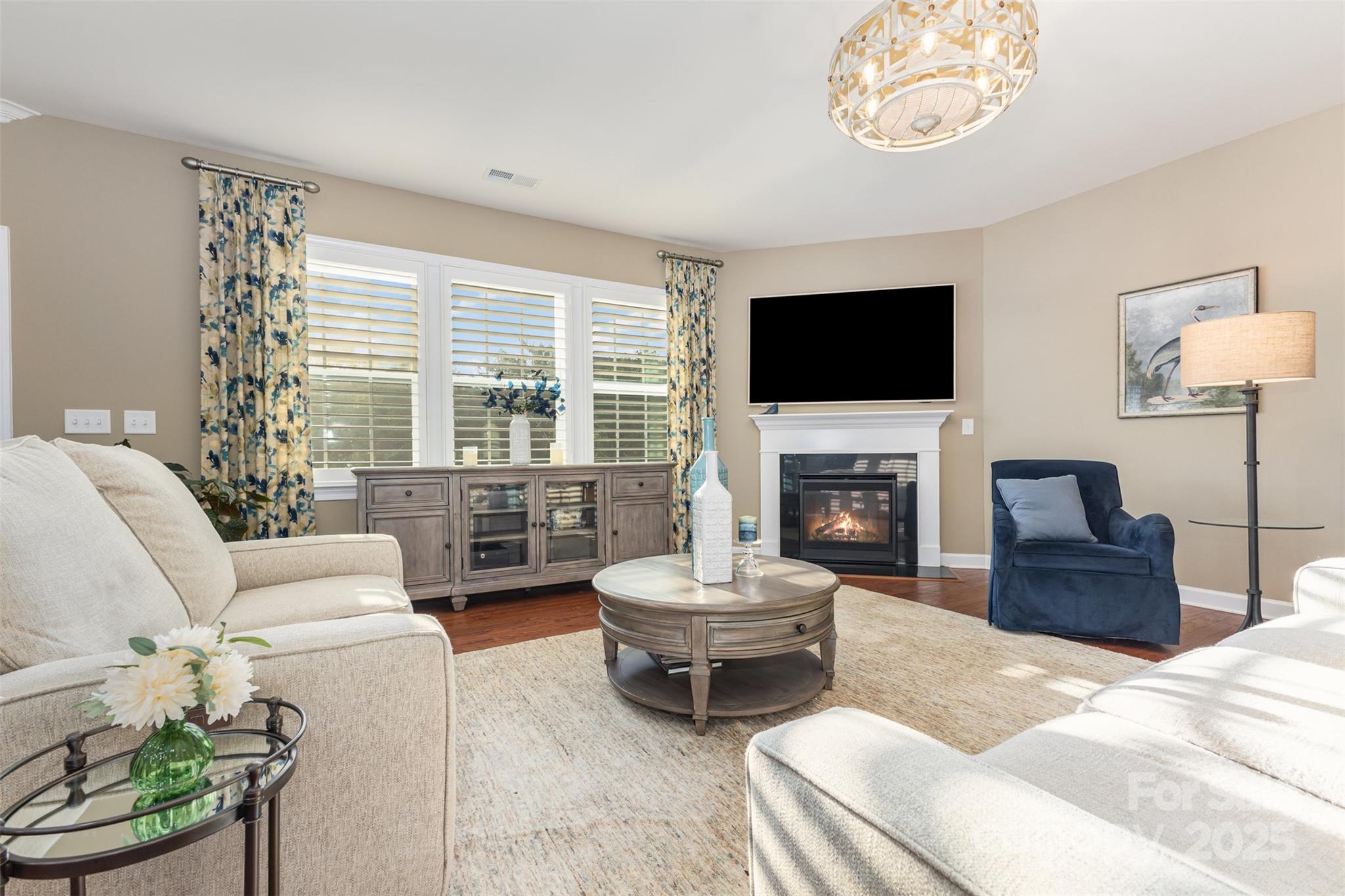 From the moment you arrive, you’ll notice the attention to detail. The charming covered entry leads to a foyer accented with wainscoting and crown molding, setting the tone for the craftsmanship you’ll find throughout the home. The spacious great room features a gas log fireplace with blower, plantation shutters, and seamless flow into the dining areas and chef’s kitchen—perfect for both everyday living and entertaining.