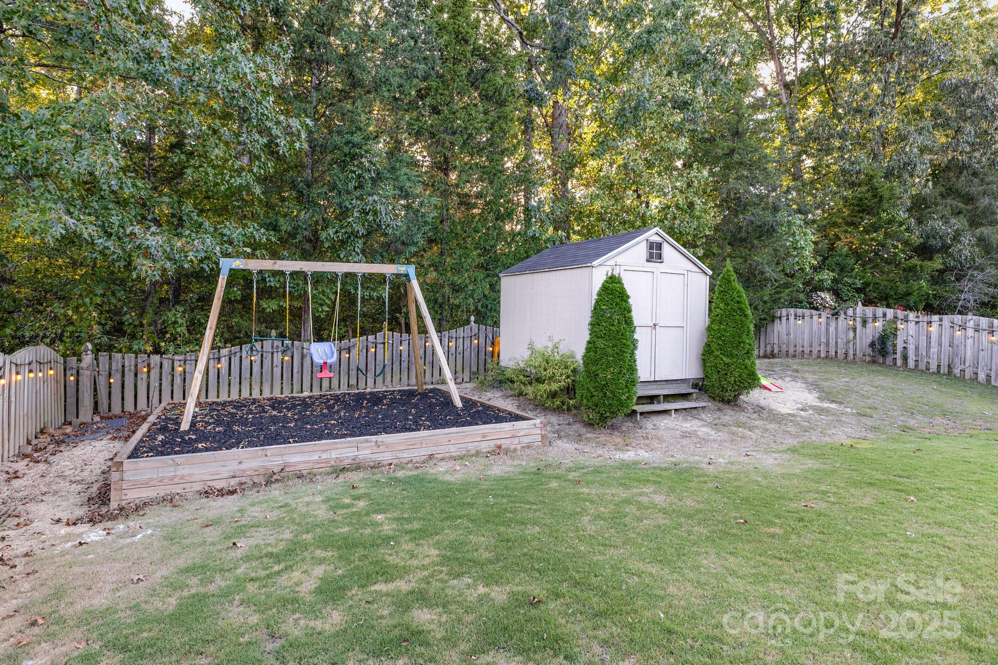 Welcome! This well-maintained home offers 3 spacious bedrooms, 2.5 bathrooms, plus 2 car garage, and is ready for your enjoyment! Located in Indian Land School District and just minutes from the interstate and the best of Fort Mill! Generous living room features a cozy gas fireplace, vaulted ceilings with tons of windows that provide ample natural light, and Levelor blinds. Chef's kitchen is complete with granite counter-tops and SS appliances. And the formal dining room is perfect for those special occasions. Primary bedroom offers trayed ceilings, walk-in closet and ensuite bathroom has dual vanities, separate tub and shower. Enjoy an evening BBQ entertaining friends under your Pergola, and the fully fenced backyard is ideal for furry friends! Plus, a large storage building for the yard and lawn equipment. AC compressor replaced in 2022. Swing set will not convey. Call listing agent with any additional questions. Schedule your showing today!