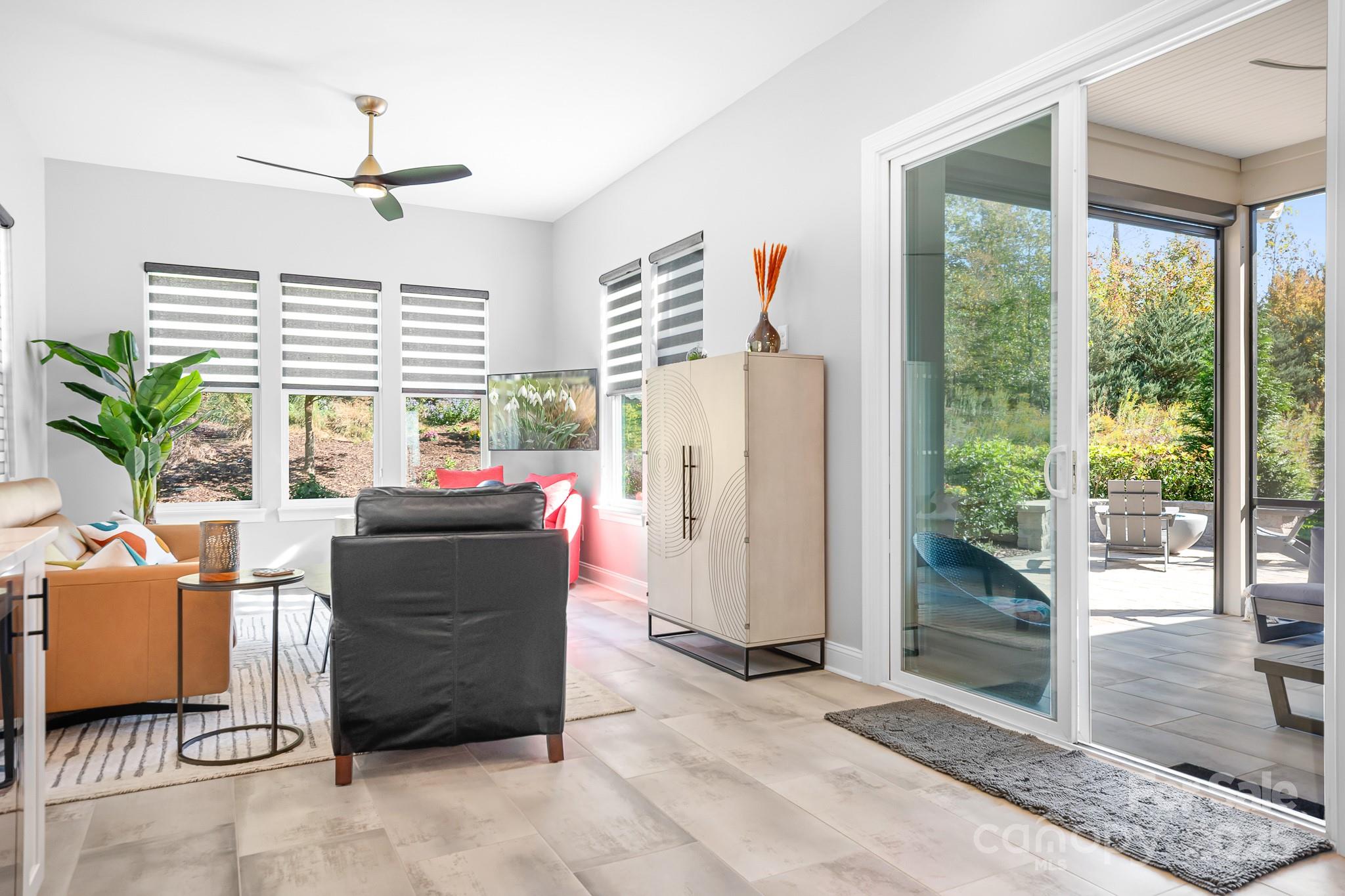 Beautiful Mature Large Private Flat Lot, Backing Up To The Natural Common Area With Added Privacy, Great For Watching Wildlife. Over $130,000 In Improvements Were Added The Last 3 Years. This Home Features 10 Ft. Ceilings, 8 Ft. Doors, Warm Engineered Hardwood Floors, Gourmet White Kitchen With Soft Close Drawers, Gas Stove, Quartz Countertops, Large Island W/Breakfast Bar, Refrigerator, Washer & Dryer Will Convey. Beautiful Built-In Electric Fireplace in Family Area, Large Tiled Sunroom with Bar/Mini Fridge For Entertaining. Spacious Master, Built-In Closets, Second Bedroom Has Built-In Wall Including Home Office. Laundry Room With Doggy Sink, Covered Front Porch & Beautiful Private Tiled Screened Back Patio With Retractable Screens. Patio With Gas Firepit. Extended 4 Ft. Car Garage. Outside of Home Just Painted. Irrigation. Looking To Move Fast, This Home Will Be For You. Enjoy The Award Winning Amenities, Freedom Boat Club On Lake Norman. Trilogy- A 5-Star Active Resort Community: Club House/Swimming Pools/Tennis/Pickle Ball/Restaurant & Bar/Nature Trails/Art Studio.