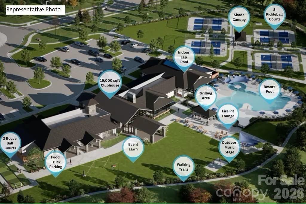 Conveniently located to charming downtown Belmont, Charlotte-Douglas International Airport, the Catawba River and Lake Wylie, hospitals, grocery stores, golf courses, and much more. Your clients will enjoy HOA-included lawn maintenance, TV & high-speed Internet, a full-time lifestyle director, and a multitude of amenities: 19,000 square foot clubhouse, indoor pool and spa, outdoor pool, pickle ball and bocce courts, dog park, walking trails, and more! This Mystique home boasts an open-concept living space with a gas fireplace; gourmet kitchen with substantial storage; luxe primary suite with an oversized, zero-entry shower; private flex room; large laundry room with sink and cabinetry; screened porch + uncovered patio; and three-car tandem bay garage - perfect for a golf cart, storage, home workshop, etc.! High-end finishes include house-wide EVP flooring (no carpet!), finished garage, crown molding, and upgraded primary closet shelving. Nestled in a scenic and quiet part of the community, while also being a short walk to the community amenity center. Please contact us to schedule a visit!