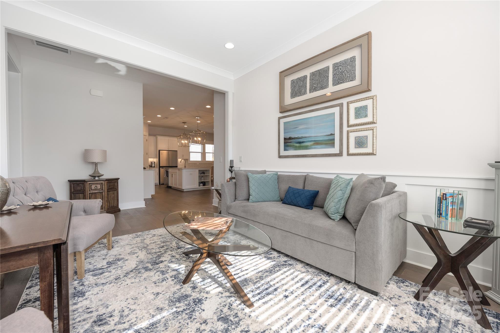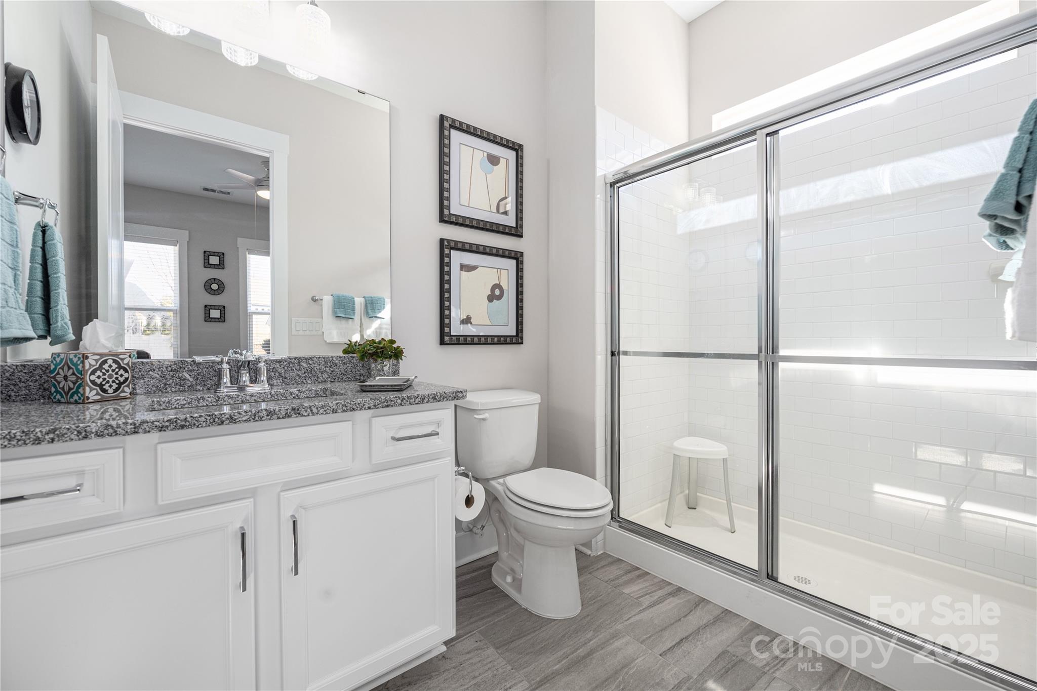 Discover easy living in this beautiful 2-bedroom plus flex room, 2.5-bath home in a boutique 55+ community! Tucked on a private lot with only one neighboring home and fountain pond view with a wooded view in back. The open layout feels bright and welcoming, featuring luxury vinyl plank floors and a gorgeous kitchen with a large island, upgraded white cabinets, granite counters, gas range, and built-in buffet. Relax by the cozy gas fireplace or unwind in the spacious primary suite with a spa-style bath and walk-in closet. Guests will love their own ensuite bedroom! Ceiling fans in both bedrooms, updated lighting, laundry with cabinets (washer/dryer convey), irrigation, and 2-car garage with utility sink. Located across from the clubhouse with a fitness room, bocce court, fire pit, and dog park. HOA covers lawn care—so you can spend more time enjoying life! Refrigerator and washer/dryer included!