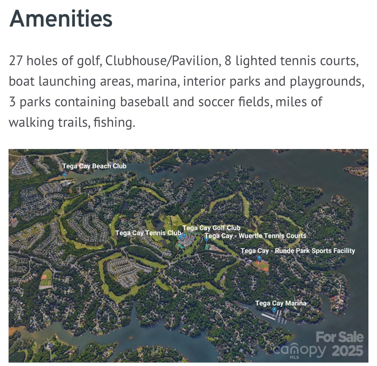 27 holes of golf, a clubhouse, 8 lighted tennis courts, boat launches, a marina, multiple parks and playgrounds, baseball and soccer fields, miles of walking trails, fishing spots, and the iconic Windjammer waterfront beach park.