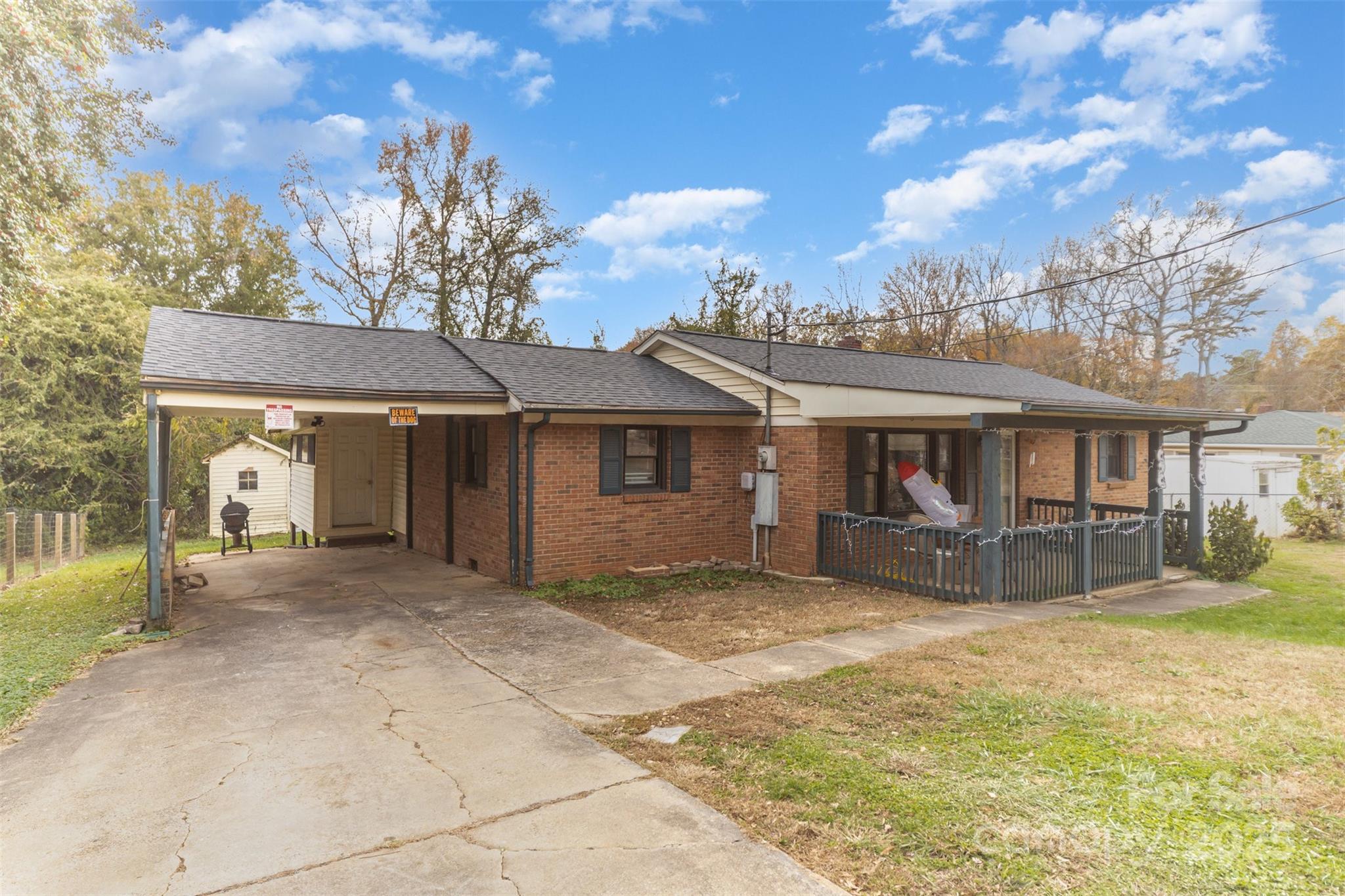 Partial brick ranch style home on spacious lot with covered front porch and back patio area great for grilling. Home is located in a peaceful neighborhood situated perfectly between Charlotte & Gastonia providing you access for any commute. Home features bright living room w/ original hardwood floors leading into a private dining area and then into the spacious kitchen. Kitchen has tons of wooden cabinets for storage plus breakfast bar for additional seating. 2 full baths & 3 bedrooms provide space for family, guests, or a home office room. Backyard backs up to trees providing seclusion and has 2 storage buildings for outdoor equipment. Home does need some repair & TLC to make it your own or is a great opportunity to add to your investment portfolio!