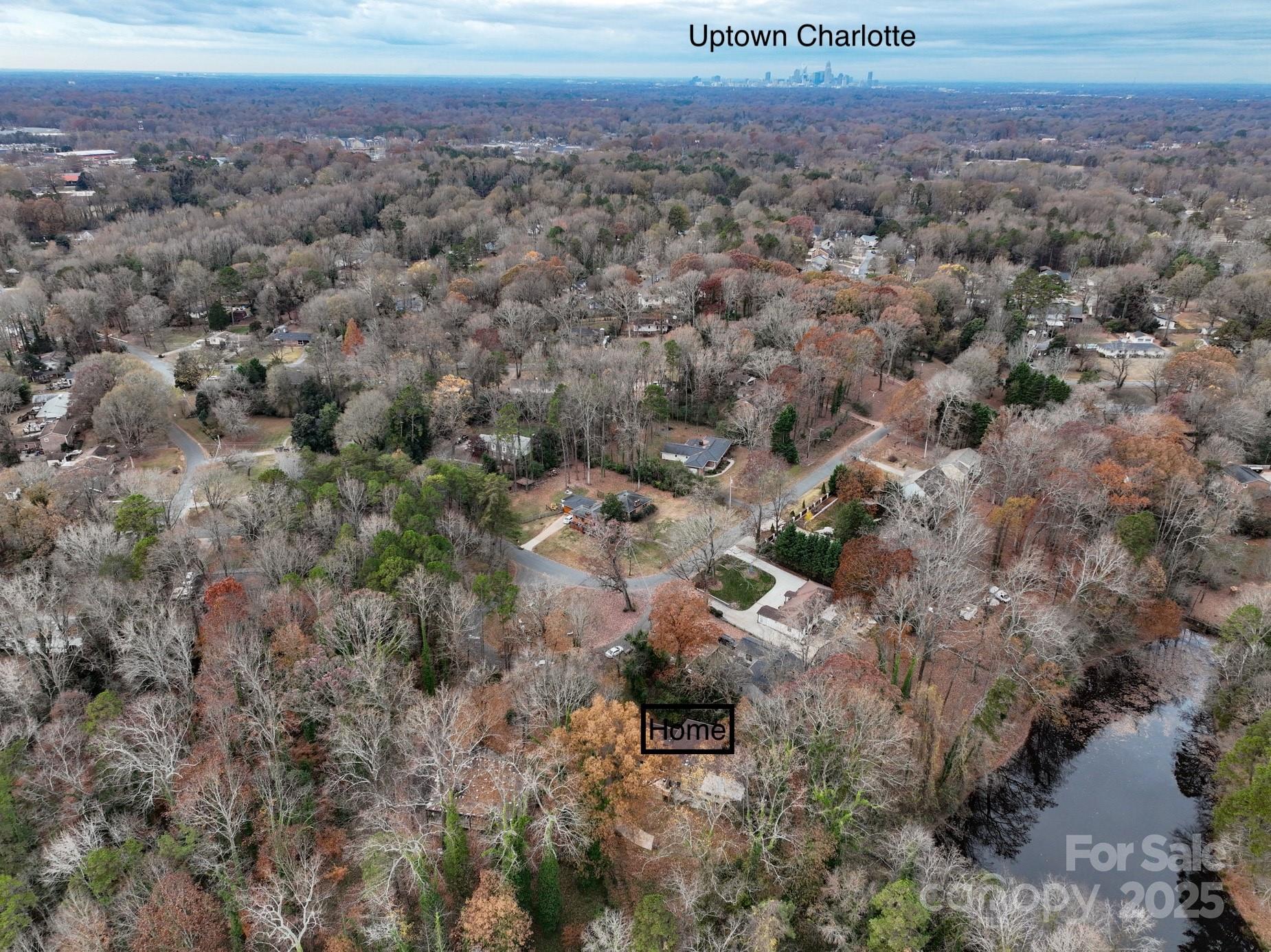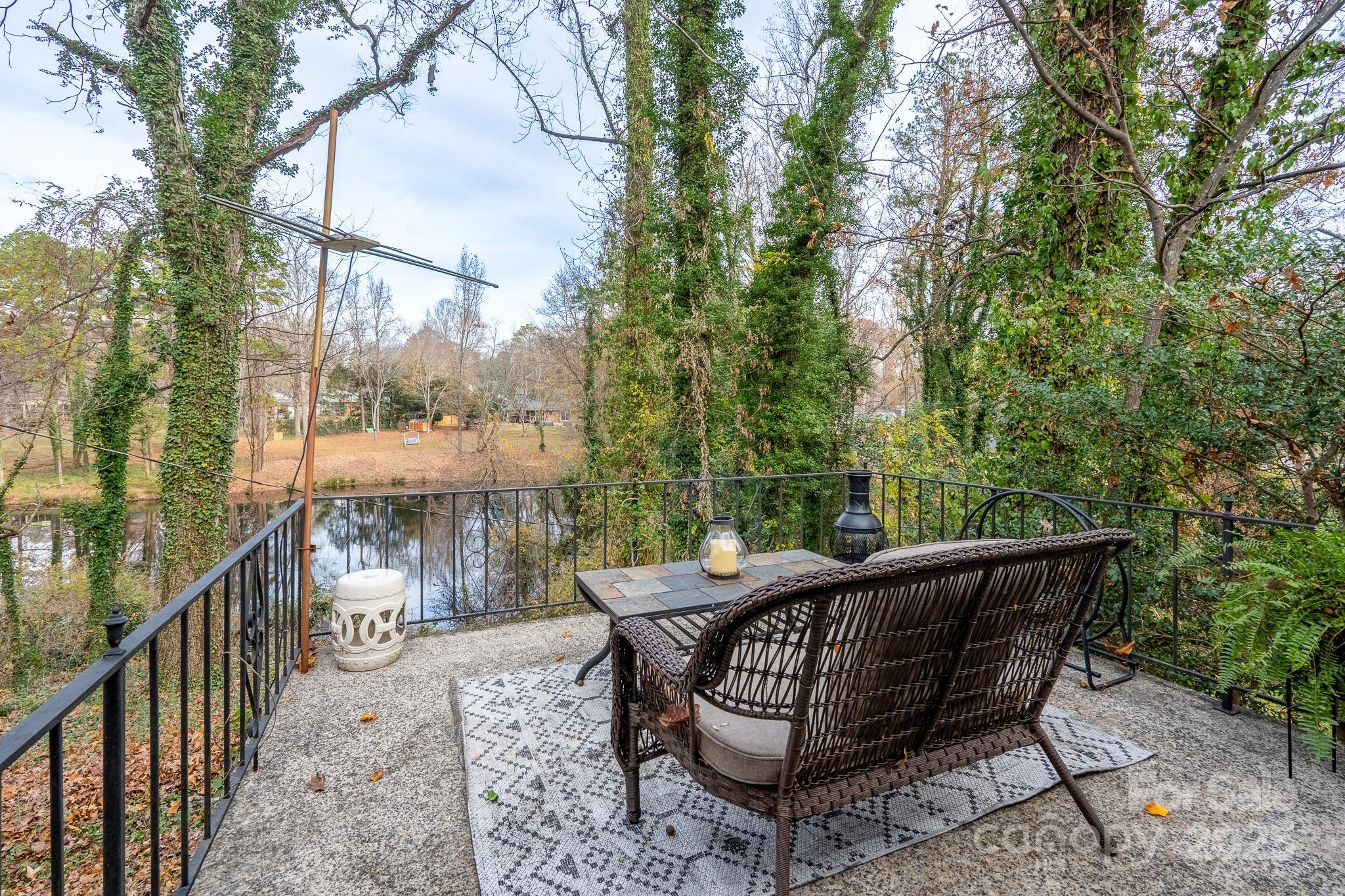 Welcome to the mid-century modern home and setting you’ve been wanting! Tucked quietly at the end of a cul-de-sac on almost one acre, this property offers rare privacy with beautiful views of both a lake and a pond. Inside, the open floor plan features a reimagined, updated kitchen and a full basement designed for flexibility—perfect as expanded living space, rental income, or a spacious two-bedroom in-law suite. The main-level kitchen is an entertainer’s dream, boasting generous counter space, a wall oven and microwave, separate gas range, beverage refrigerator, and direct access to a large deck overlooking the water. The main level also includes a bright, airy great room that fills with natural light, an inviting dining area with a fireplace, an additional bedroom and full bath, and a dedicated laundry room. The primary suite is a true retreat, complete with a large flex space ideal for an office, lounge, or studio, plus an ensuite bath, walk-in closet, and a private porch with tranquil pond views. The fully finished lower level adds exceptional versatility with two additional bedrooms, a full bath, great room with a wood-burning stove, full kitchen, laundry room, and walk-out patio. All of this is just minutes from UNC Charlotte, Plaza Midwood, NoDa, I-485, and Uptown Charlotte. Outdoor lovers will appreciate access to ten nearby parks, ranging from just 0.2 miles to 1.5 miles from your doorstep.