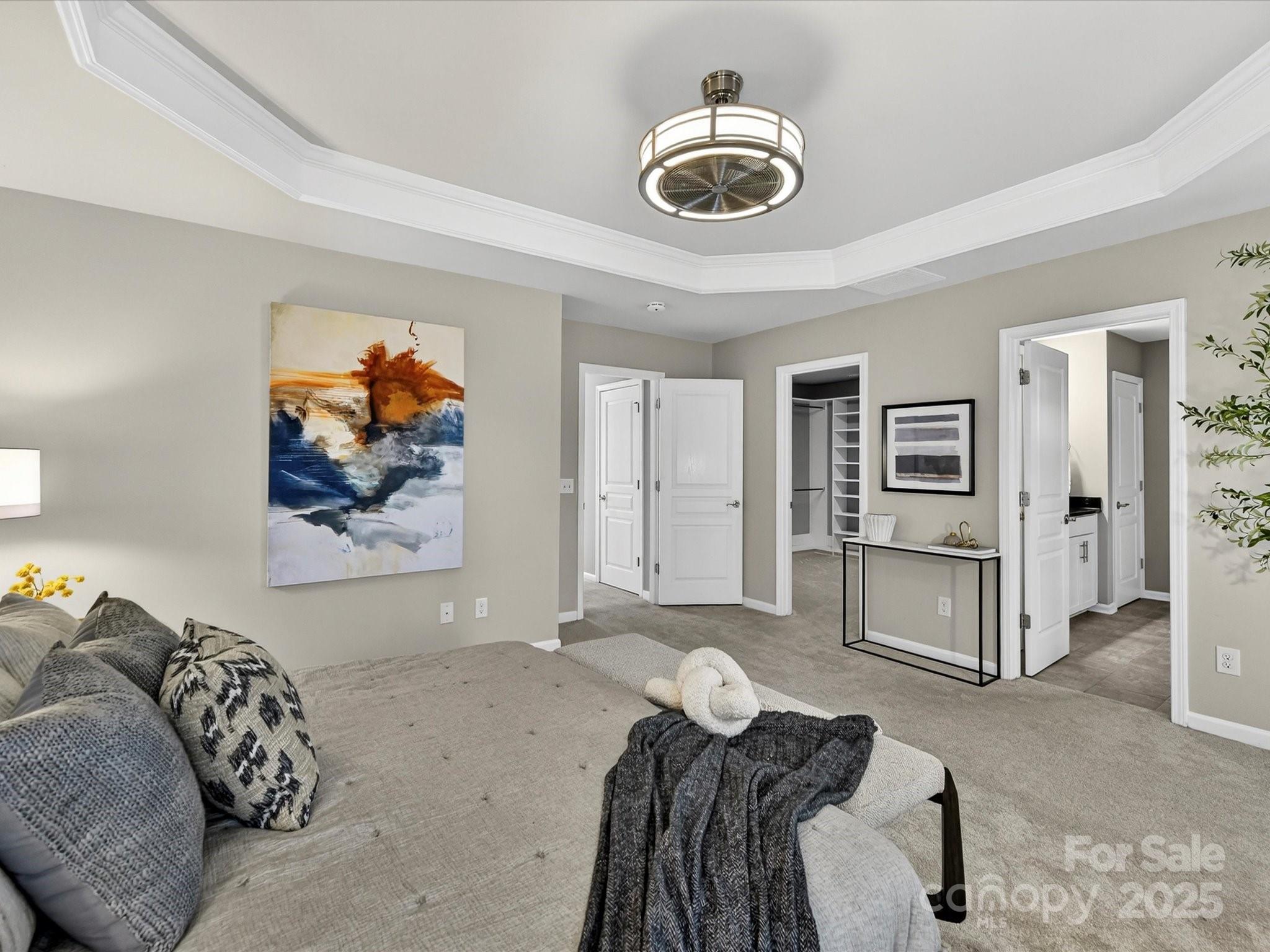 Upstairs: 9-foot ceilings. Loft is ideal for a perfectly-organized desk. Primary bedroom suite offers a tray ceiling, huge custom walk-in closet and spa-like bathroom with shower, dual vanities. a private water closet, and an extra storage closet for bed linens, towels or collectibles. Two generously-sized secondary bedrooms enjoy access to a hall bathroom with wide vanity and tub/shower.