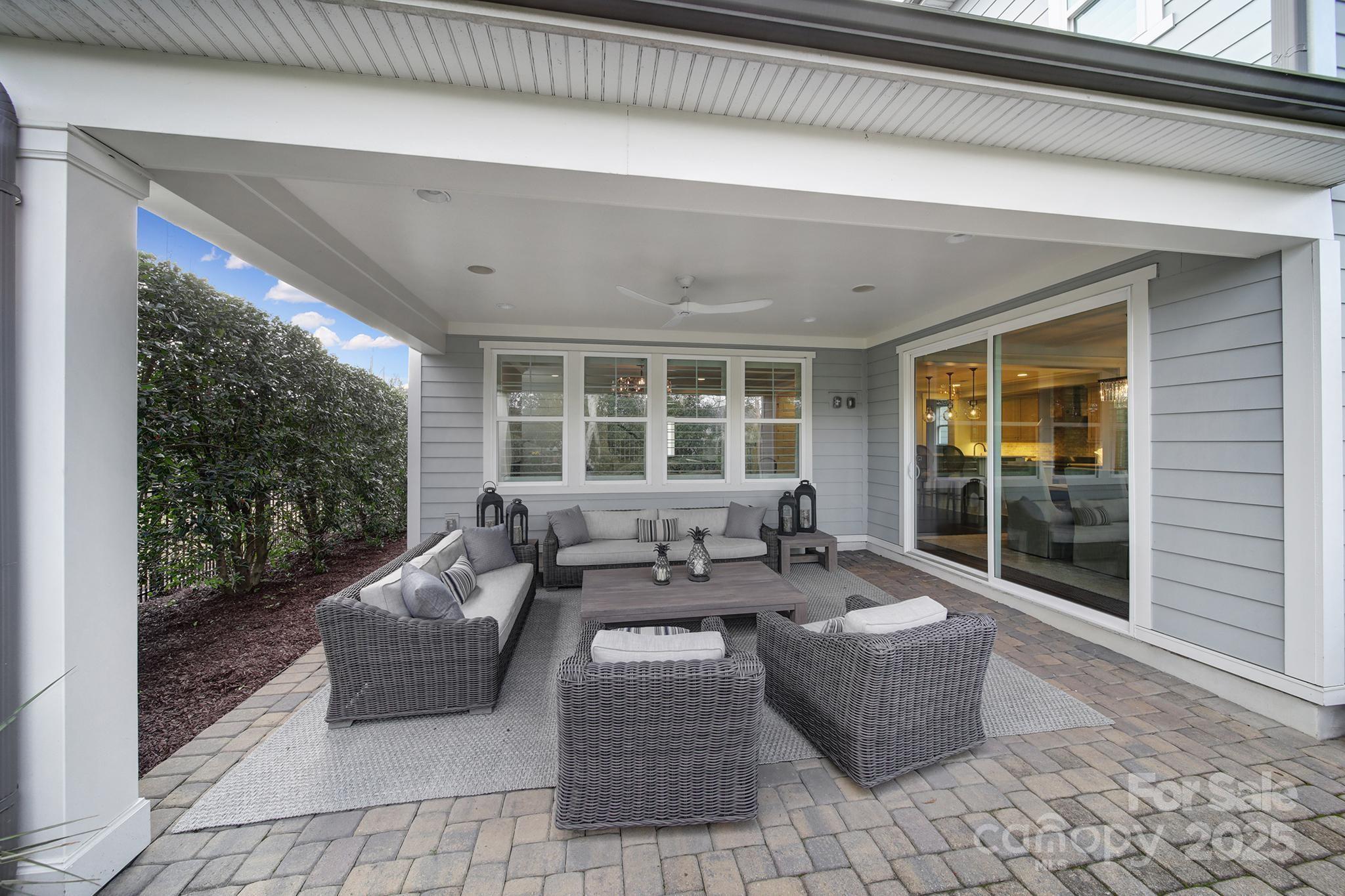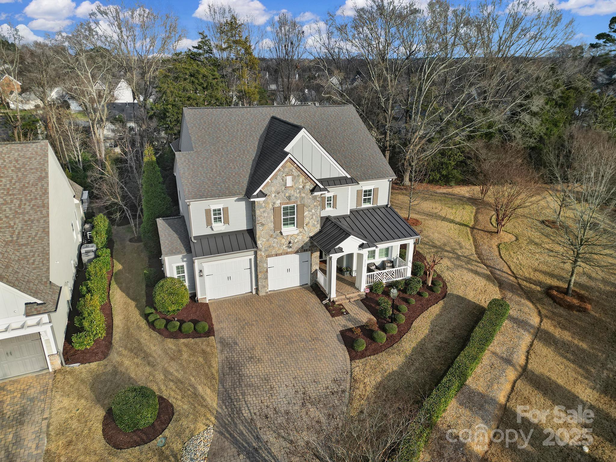Located within walking distance of Blakeney Town Center, 8912 Blakeney Dr. showcases refined craftsmanship and thoughtful upgrades. The open-concept living areas are filled with natural light and enhanced by crown molding, Restoration Hardware lighting, and custom 4” plantation shutters throughout. The kitchen is designed for both function and style, featuring a Wolf range, KitchenAid appliances, expansive counter space, a large center island, and a custom walk-in pantry. The primary suite offers a private retreat with a spa-inspired bath and two generously-sized custom closets. Additional living spaces flow seamlessly to the fenced, secluded backyard ideal for relaxing or entertaining. The oversized garage with epoxy flooring provides ample room for parking and storage, with flexibility for a workshop or hobby space. Notable improvements include a complete new HVAC system installed in 2024, a Halo LED whole-house air purification system, Energy Recovery Ventilator (ERV) and a CPI security system. Convenient walking or biking proximity to Hawk Ridge, Community House, and Ardrey Kell schools adds to the home’s appealing location, along with nearby nature areas and community walking paths. This luxurious home offers a rare blend of high-end finishes, modern systems, and everyday convenience in one of the area’s most sought-after communities. The 2026 HOA dues have been prepaid by the sellers as a courtesy.