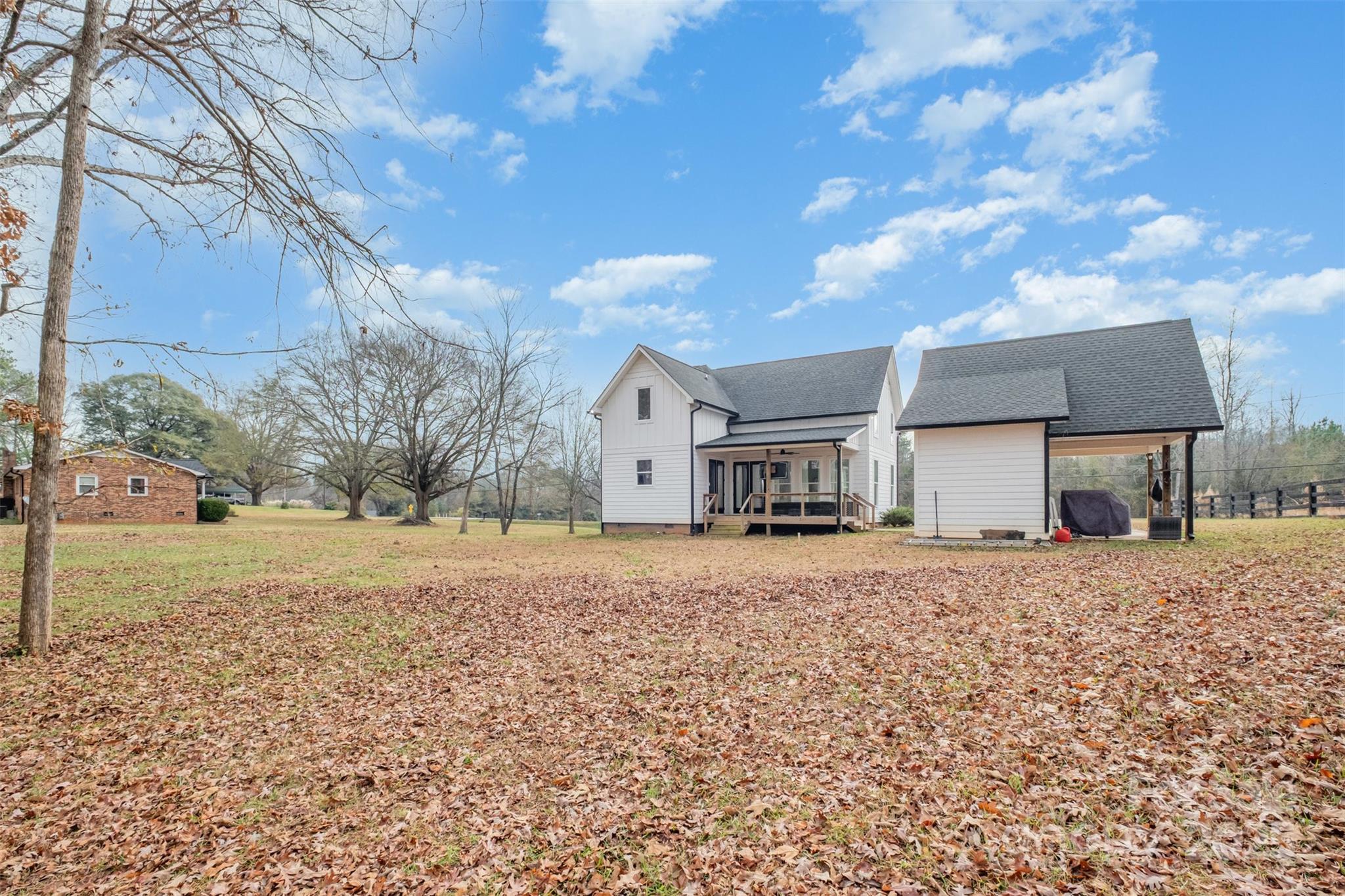 Welcome home, where modern meets country living. Custom designed and tastefully nestled on a flat 1 acre lot outside of city limits. This beautiful 3-bedroom, 2.5-bath home offers picturesque mountain and farmland views, NO HOA, and proximity to Crowder Mountain from the back porch. Boasting approximately 2,000 sqft. with 19'4" ceilings in the 2-story great room. 10' ceilings throughout the remainder of 1st floor, custom 8' interior & exterior doors, and 7' windows in the lower level of the great room. The custom kitchen includes white linen glazed painted maple wood cabinets with soft close full extension drawers. A large island with white quartz countertops, white beveled tile backsplash, and stainless steel appliances. The property provides added flexibility with a convertible bonus space above the 2 car carport, ideal for future expansion or recreation. Enjoy privacy, outdoor space, and freedom for recreational use—all just minutes from nature and 40 minutes from uptown. Bring your vision and make it yours.