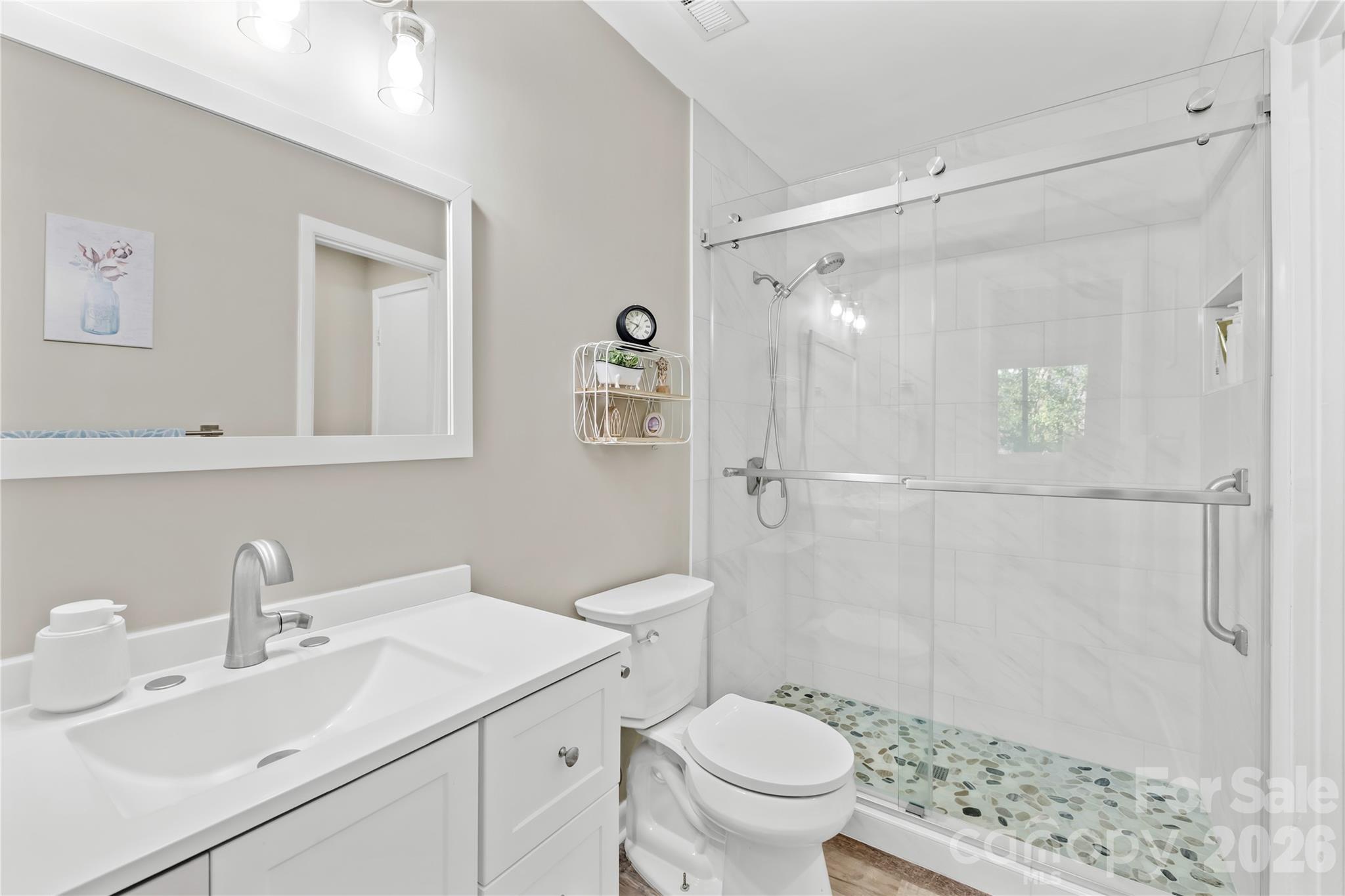 Beautifully updated end-unit townhome in highly desirable Sardis Cove. One of the finest 1-bedroom units to come on the market. This turnkey retreat features over $40,000 in quality improvements completed since 2024, offering modern style, comfort, and low-maintenance living. The bright, open floor plan welcomes you with new luxury waterproof LVP flooring, fresh interior paint, updated lighting, recessed can lights above the kitchen window, 2” Levolor blinds, barn-door accents, and a white-washed fireplace with a new screen that anchors the living space. The renovated kitchen is both stylish and functional, showcasing quartz countertops, tiled backsplash, updated cabinetry, stainless steel GE Profile appliances, a new sink and faucet, and seamless flow into the dining and living areas. Ideal for everyday living or entertaining. The primary suite is a true retreat, highlighted by an $8,000 spa-style shower, updated vanity, and a calm, refreshed aesthetic. Additional upgrades include new windows, a new sliding door, and a new Rheem 50-gallon water heater. Outdoor living is a rare bonus in this community, featuring a private, newly vinyl-fenced patio and gazebo, creating a peaceful outdoor oasis. Ideally located near Matthews, SouthPark, McAlpine Creek Greenway, shopping, dining, and major commuter routes. Turnkey. Modern. Move-in ready.