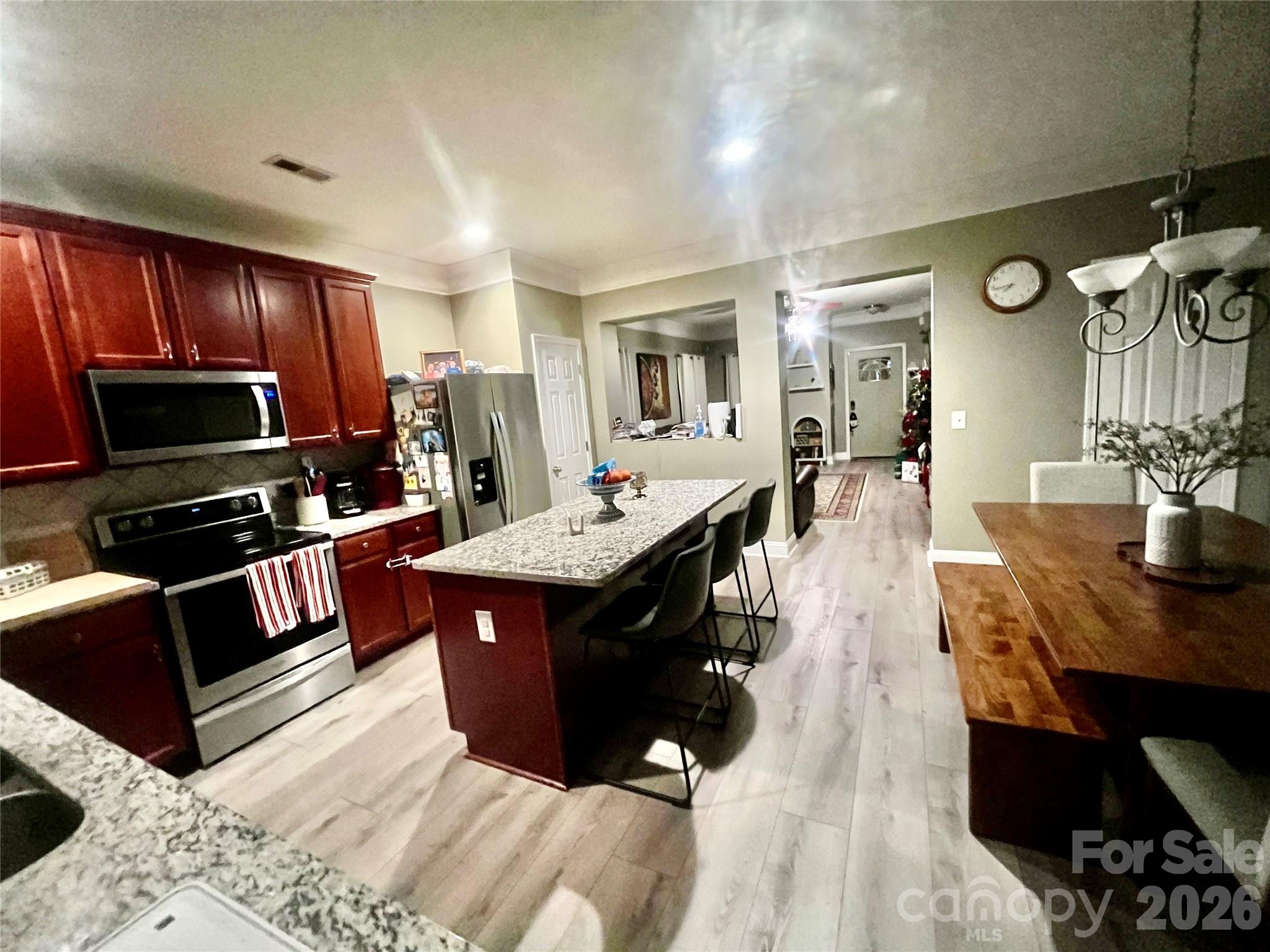This well-maintained 3-bedroom, 2.5-bath home offers a spacious eat-in kitchen featuring stainless steel appliances, 42" cherry cabinets, recessed lighting, an oversized island, granite countertops, and a tile backsplash.