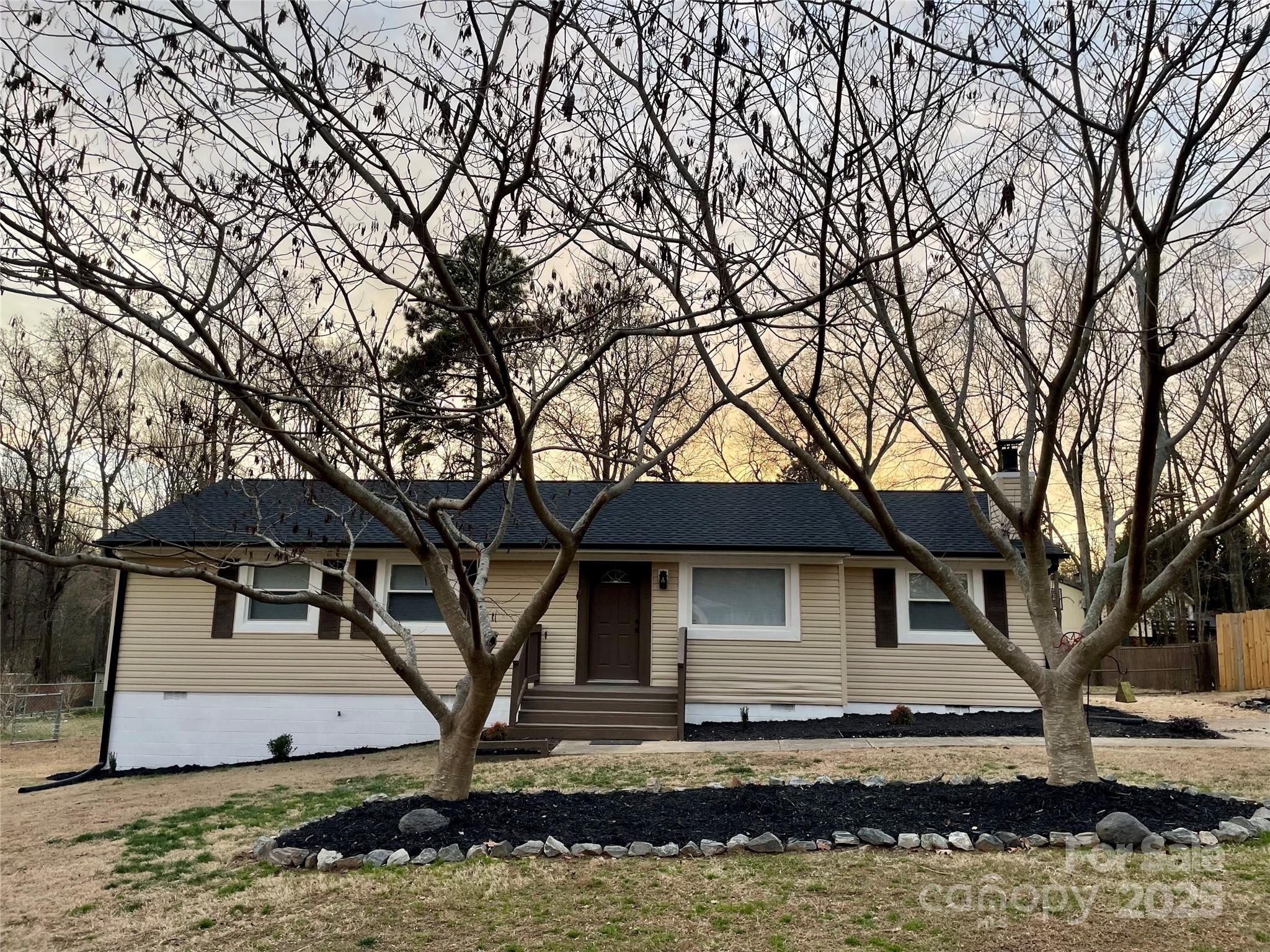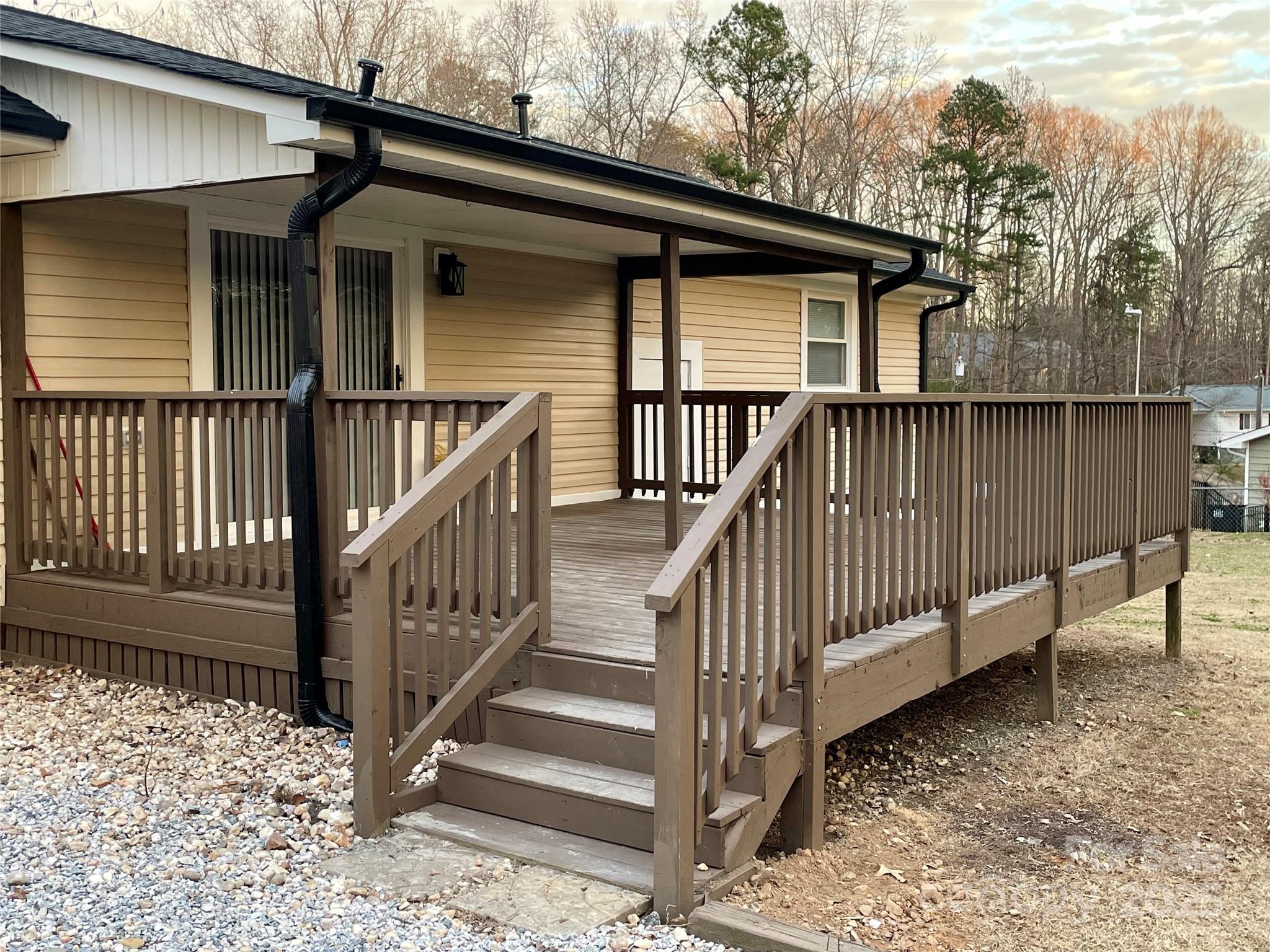 Beautifully updated, move in ready one-story ranch home that would make any homeowner proud. It's priced reasonably well for any buyer so it's sure not to last long. It's permitted for a 3 bedroom but the living space offers a wood burning fireplace and en suite full bathroom that if not used as a primary; could be a perfect space for an office, kids hang out room, game room, office, craft room, etc. It is a split floor plan! Brand new kitchen appliances convey and enjoy all new flooring along with freshly painted interior. Two exterior outbuildings convey. Property sits on almost half an acre, relatively flat land and fenced from the back of the house. Short jaunt to Crowders Mountain hiking and scenic enjoyment. If you are entertaining something close to this~ please come and view this lovely jewel of a home! Fabulous back deck perfect for evenings of grilling and dining outside~ to include an above ground fire/grilling pit and additional graveled patio area! If you enjoy the outdoors, grilling, cooking and what it has to offer you really must see this home! Such a gem! Property is eligible for FHA loan after 90 days of seller closing on it on 10/22/2025.
