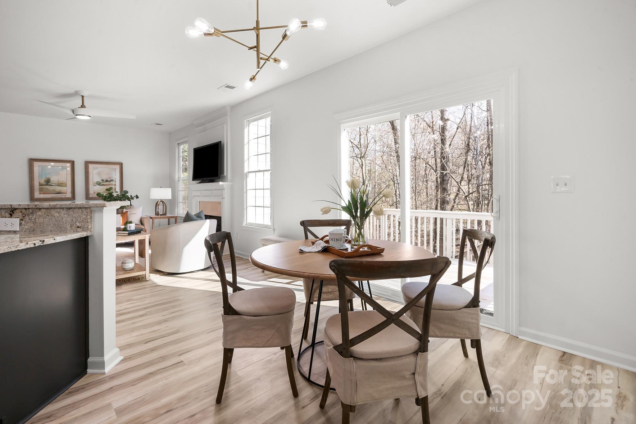 This incredible turnkey property checks all the boxes on your wish list - .54 acre cul-de-sac lot, brick and fiber cement exterior, attached two car garage, open floor plan, full finished walk out basement, over 3700+ SF, private wooded lot, and endless possibilities. Inviting two story foyer entrance leads your eyes in all directions to take in this beautiful and complete interior renovation. You will be greeted with brand new continuous LVP floors throughout the main and upper levels including staircase, fresh interior paint throughout, intricate double stacked crown molding, elegant picture molding accents, all new light fixtures, and sleek six panel Urban Bronze doors with new brushed gold hardware and hinges. Professionally staged to ensure a wonderful showing experience. The main level features a perfect combination of traditional formal rooms combined with a large open living room, kitchen, and breakfast nook area that is perfect for entertaining. Abundant natural light throughout with insulated windows, storm door, bay window, and brand new sliding glass door leading to relaxing raised deck. The transformed kitchen boasts granite countertops, refreshed cabinetry, new brushed gold hardware, new custom tile backsplash, new brushed gold faucet, stainless steel appliances with desirable gas range for cooking, breakfast bar for additional seating, and convenient pantry. The living room shines with a gas log fireplace as the focal point, wall of windows with private tree-lined view, and a rear hidden staircase leading to second floor. The oversized primary bedroom retreat is the "WOW" factor for the property - double door entry, perfect condition with separate sitting room, tray ceilings, brand new ceiling fans, and great natural light. The ensuite primary bathroom flaunts vaulted ceilings, brand new double vanity with LED lighted mirror, new chandelier, garden tub, shower stall, private doored water closet with dual flush commode, spacious walk-in closet, and walk in attic access. Three generously sized auxiliary bedrooms and updated second full bathroom complete the second story. Highly sought after full finished basement provides flexible space to meet your personal needs - second home office, bonus room, craft room, exercise room, guest area, endless possibilities. Brand new carpet, fresh interior paint, new light fixtures, new ceiling fans, and renovated half bathroom create a renovated blank slate in the basement for your imagination. The basement offers both interior access off the foyer and separate exterior access via walkway from driveway. Prime .54 acre cul-de-sac lot with private wooded views and easy to maintain yard. Ornate gate in backyard has stairs leading to lower tier of property and serene babbling creek for relaxing setting and wildlife/nature lovers. Great storage throughout home and basement. Finished attached two car garage with custom overhead storage racks, fresh paint, sealed/painted garage floor, and garage openers. Runners, walkers, cyclist, and outdoor enthusiast will appreciate the convenient neighborhood access to the Mallard Creek Greenway linking to miles of trails just footsteps away from home. AGENTS ARE OWNERS.