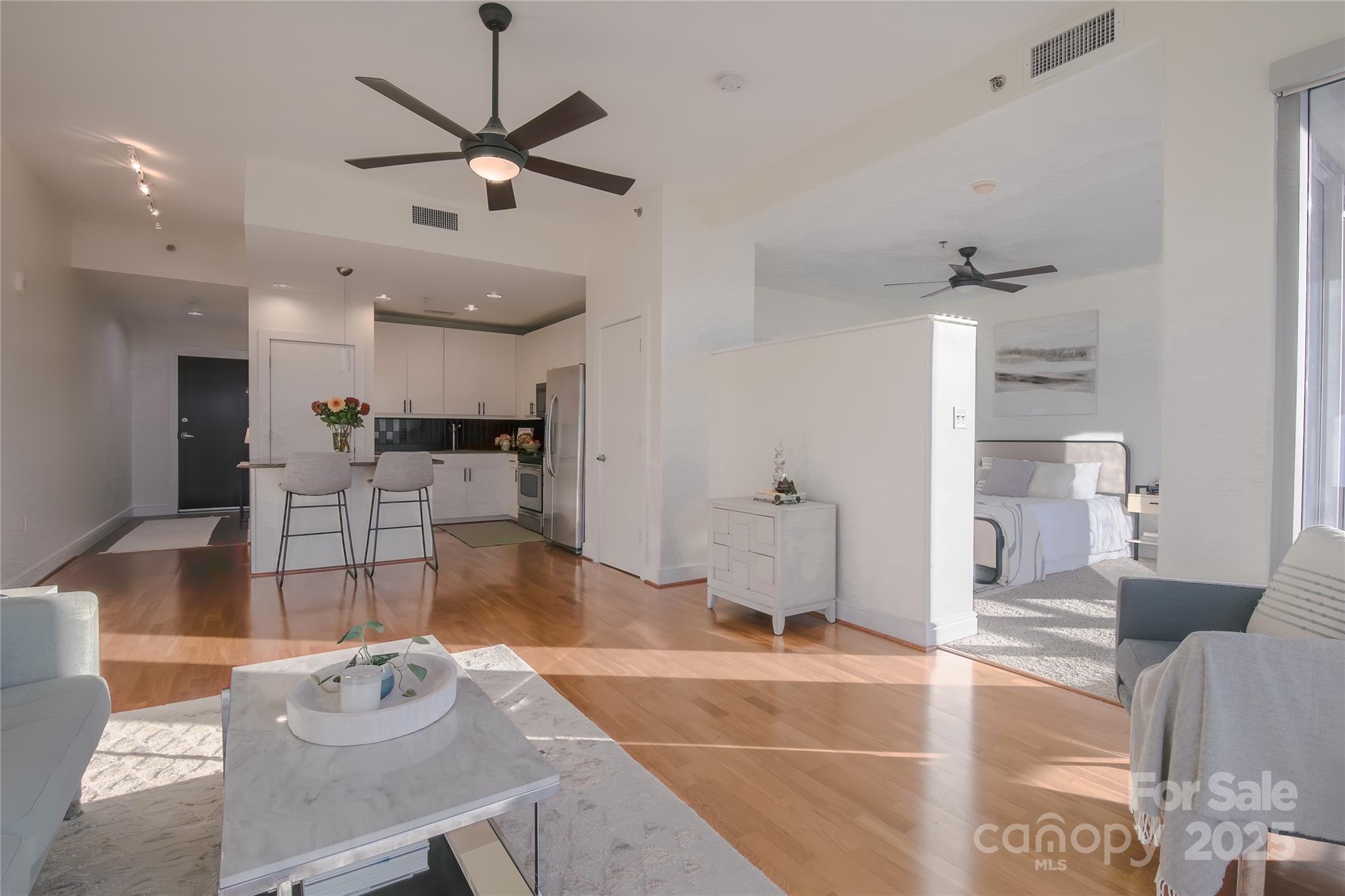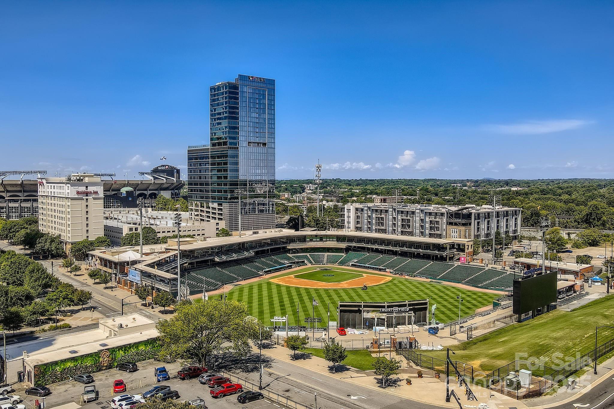 Welcome to the 9th floor of Charlotte’s Iconic Trademark building—where style, skyline, and serenity converge.This beautifully appointed residence offers an unobstructed front-row seat to breathtaking sunset panoramas, BB&T Ballpark, and firework displays from the comfort of your living room.Step into an open-concept floor plan flooded with natural light and accentuated by floor-to-ceiling windows. The kitchen flows effortlessly into the spacious living area—ideal for both relaxing and entertaining. Enjoy the recent update of the kitchen and bathroom with new cabinet paint and hardware along with new microwave. Situated in the heart of Uptown, Trademark is renowned for its upscale amenities, including a sky terrace with city views, resort-style pool, and secured access. Live steps away from Truist Field, Romare Bearden Park, and the vibrant energy of Uptown’s dining, cultural & entertainment scene. Whether you’re seeking a chic city retreat or a savvy investment in one of Charlotte’s most desirable buildings, this home delivers exceptional value, unmatched views, and true urban sophistication.
