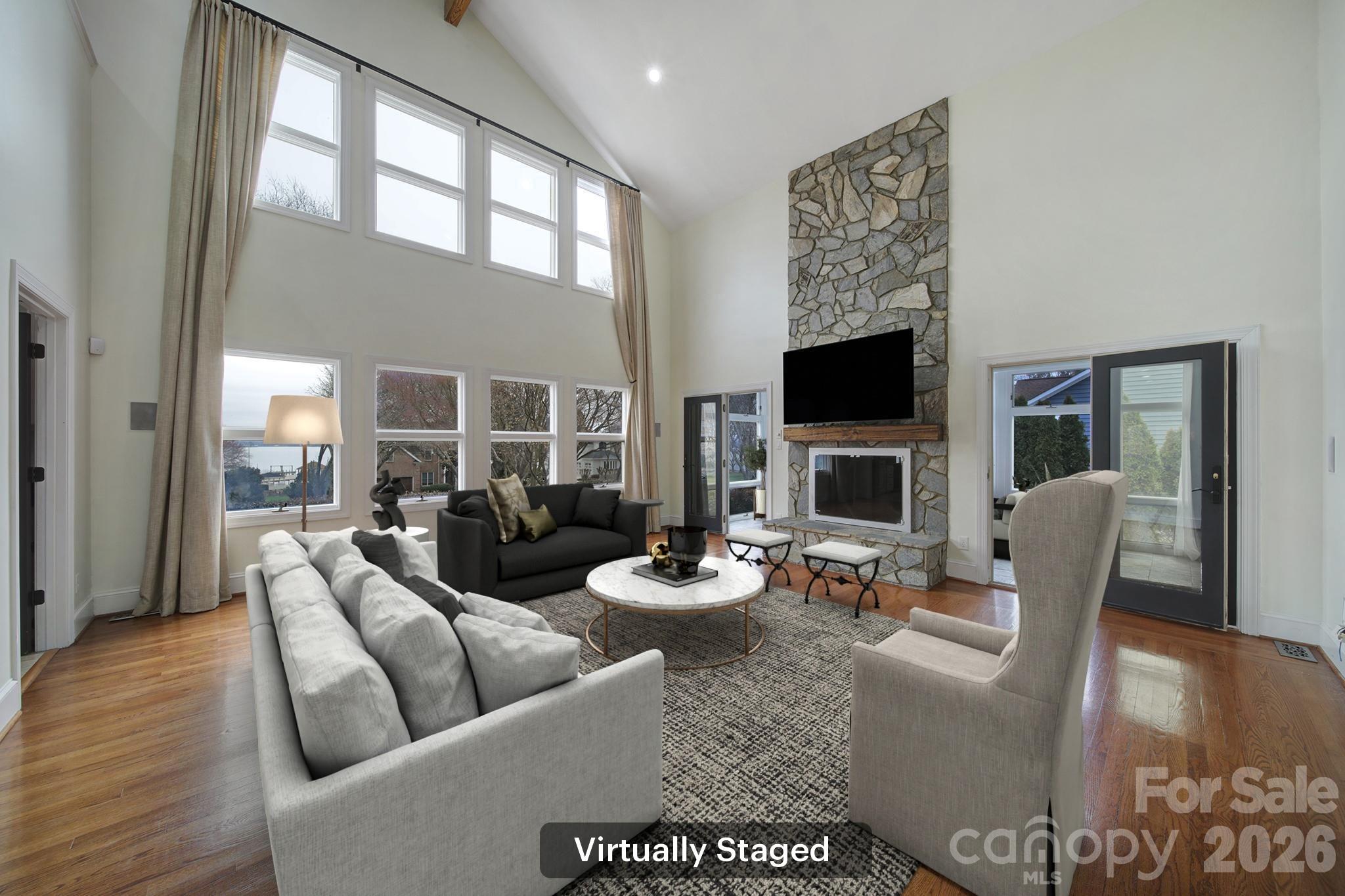 Experience stylish lakeside living in the highly desirable Royal Pointe Community, complete with a deeded boat slip and access to Lake Norman. This stunning custom 3-bedroom home offers a potential 4th bedroom on the second floor and is thoughtfully designed for both everyday comfort and exceptional entertaining. The main-floor owner’s suite is a true retreat, featuring a spa-inspired bath with a doorless shower, dual closets, and private access to the sunroom. Just off the Great Room, the cozy sunroom provides a peaceful space to enjoy year-round lake views. The kitchen sits at the heart of the home, offering two breakfast bars, seamless flow into the living areas, and access to a private dining patio overlooking Lake Norman. Upstairs, a spacious loft provides endless possibilities for a game room, pool table, or additional living space, while the bright home office includes a storage closet—perfect for working from home. Outdoor entertaining continues with a nicely updated outdoor kitchen, creating the ideal setting for gatherings while enjoying the pool and jacuzzi. Additional highlights include a community boat ramp, insulated closed crawl space, and beautifully integrated indoor and outdoor living areas that capture the best of Lake Norman living.