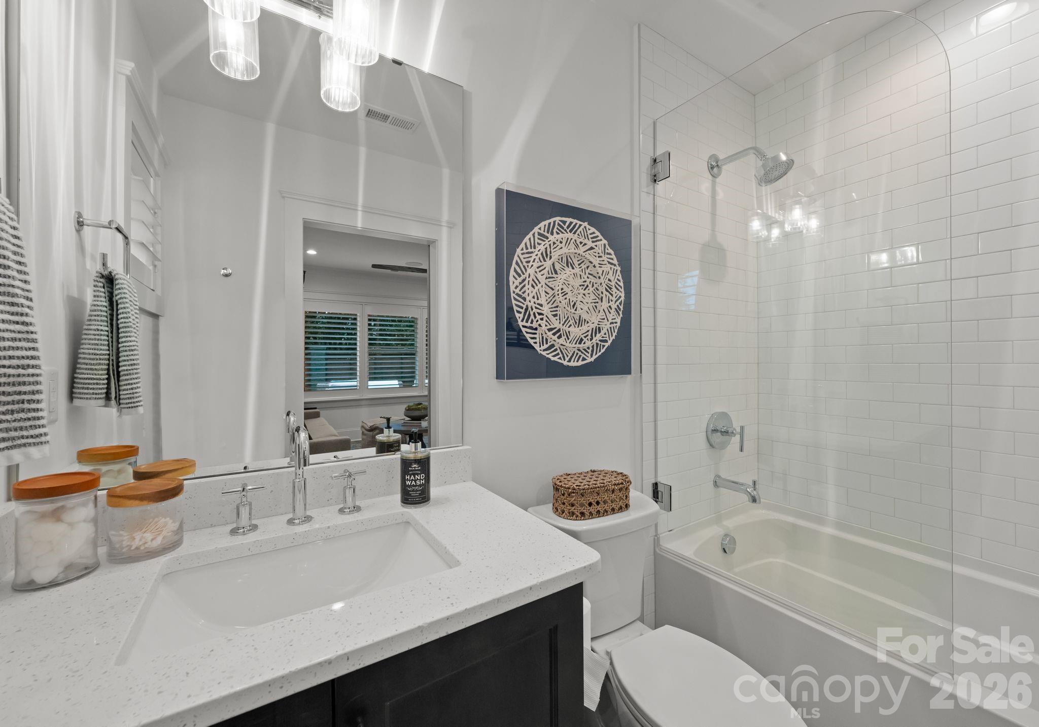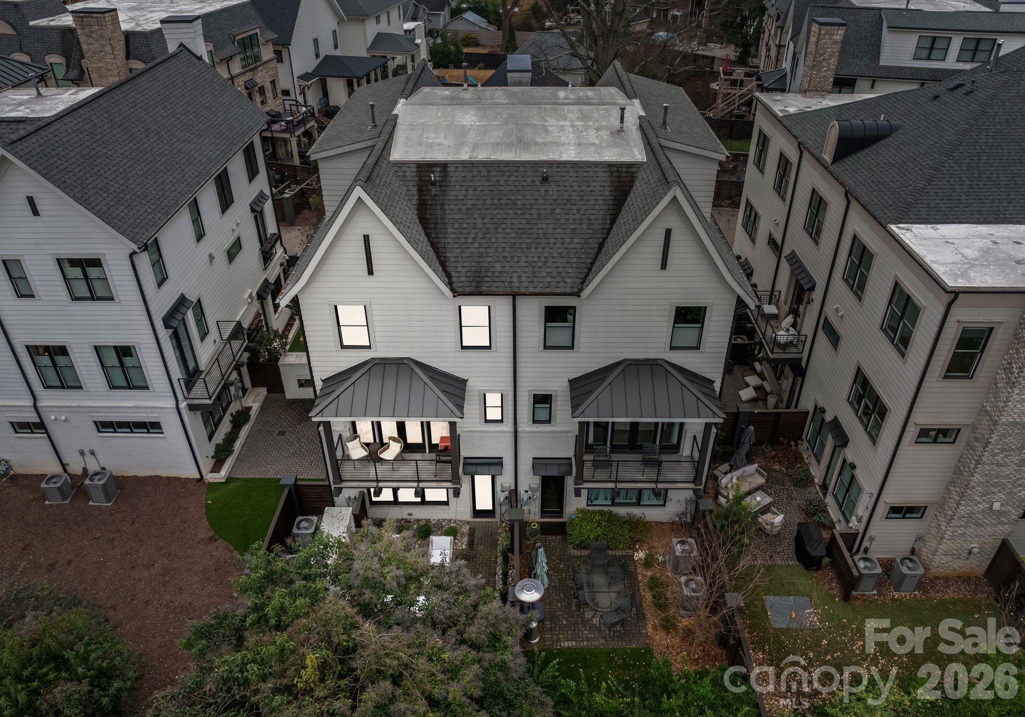 Four-level luxury townhome in Elizabeth at The Towers at Mattie Rose, offering refined design and flexible living. This 3BR, 3.5BA residence spans 2,717 SF with thoughtful separation for living, working, and entertaining. The open main level features wood floors, custom lighting, and a chef’s kitchen with Thermador appliances, Kohler farm sink, oversized island, and bespoke metal hood. Integrated smart home tech includes Control4 automation, multiple speaker zones, and lighting controls. Lower-level flex space with custom dry bar and full bath suits guest, office, or gym use. Upper level hosts a serene primary suite with dual vanities, large spa shower, and custom closet, plus a secondary suite with private balcony. Fourth-floor bonus loft adds versatility with a second bar. Three outdoor areas include covered balcony, private upper balcony, and fenced paver patio with gas fireplace and turf. A large walk-in attic on the 4th floor provides exceptional storage. Lock-and-leave convenience near Uptown such as restaurants, Memorial Stadium, Spectrum Center, Plaza Midwood.