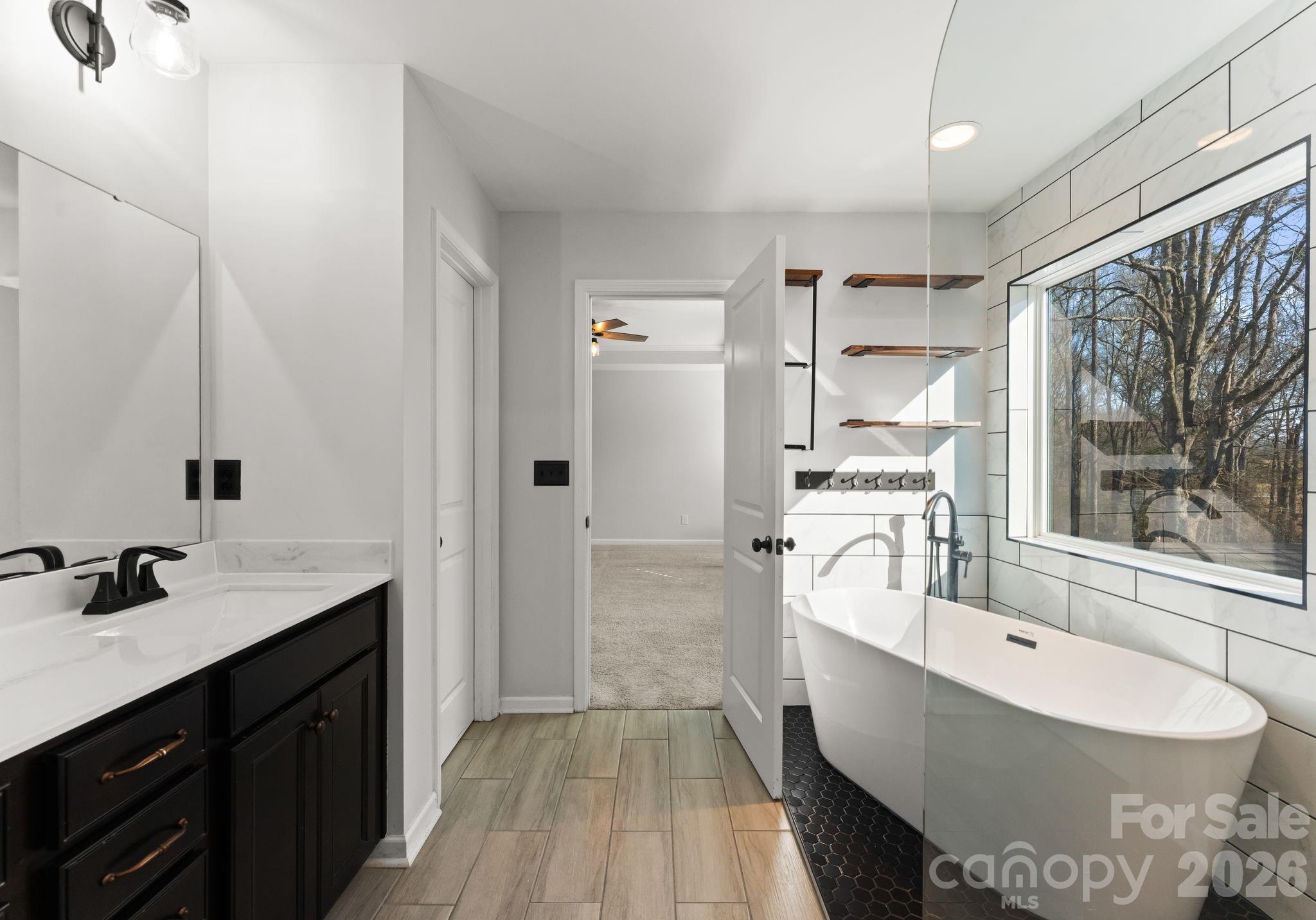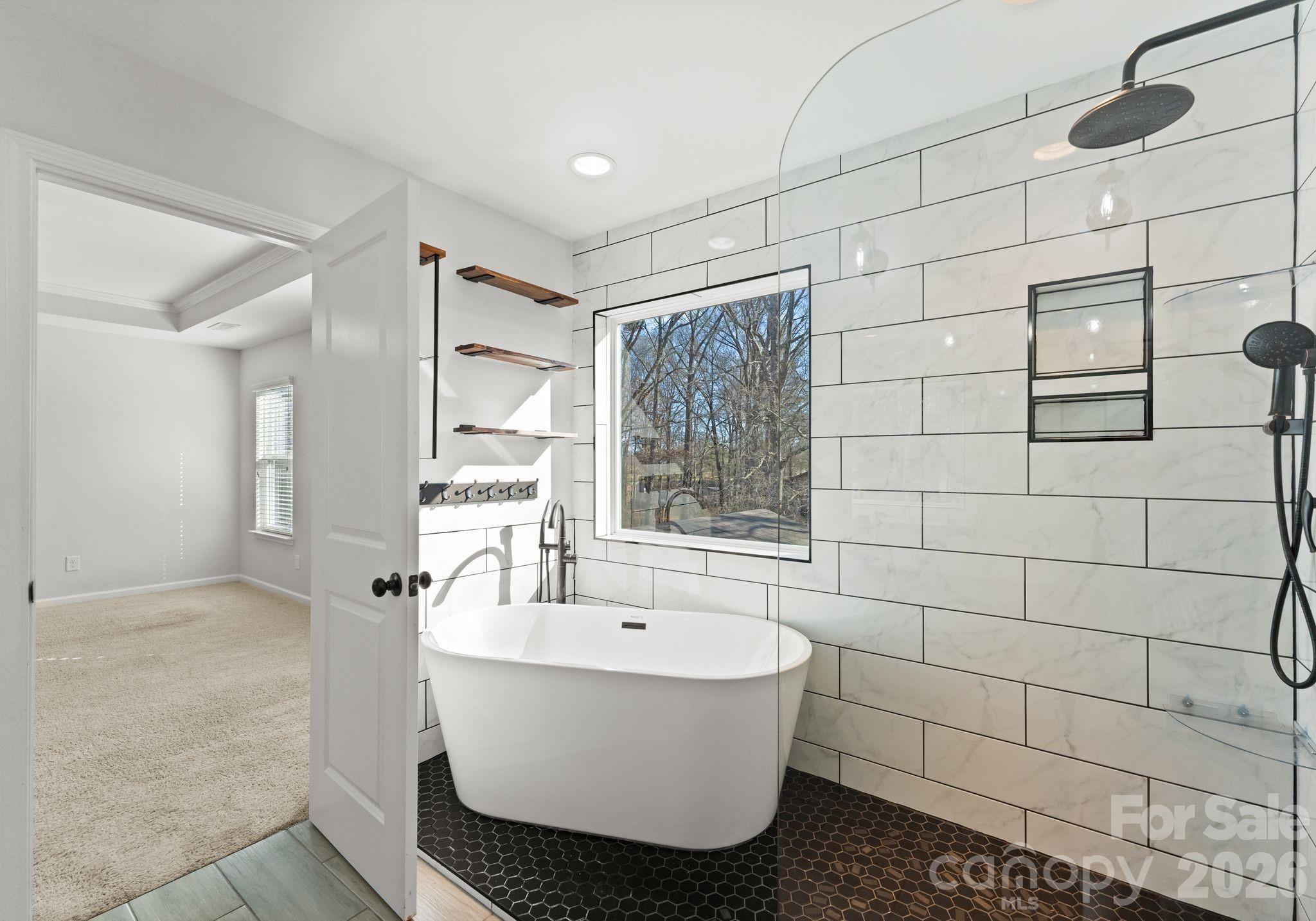 The primary suite is a standout feature, offering a calm and comfortable retreat from the rest of the house. The custom primary bathroom elevates the experience with a spa-inspired design, featuring an oversized open shower and a freestanding soaking tub. It’s a space created for slowing down, recharging, and enjoying a sense of everyday luxury.