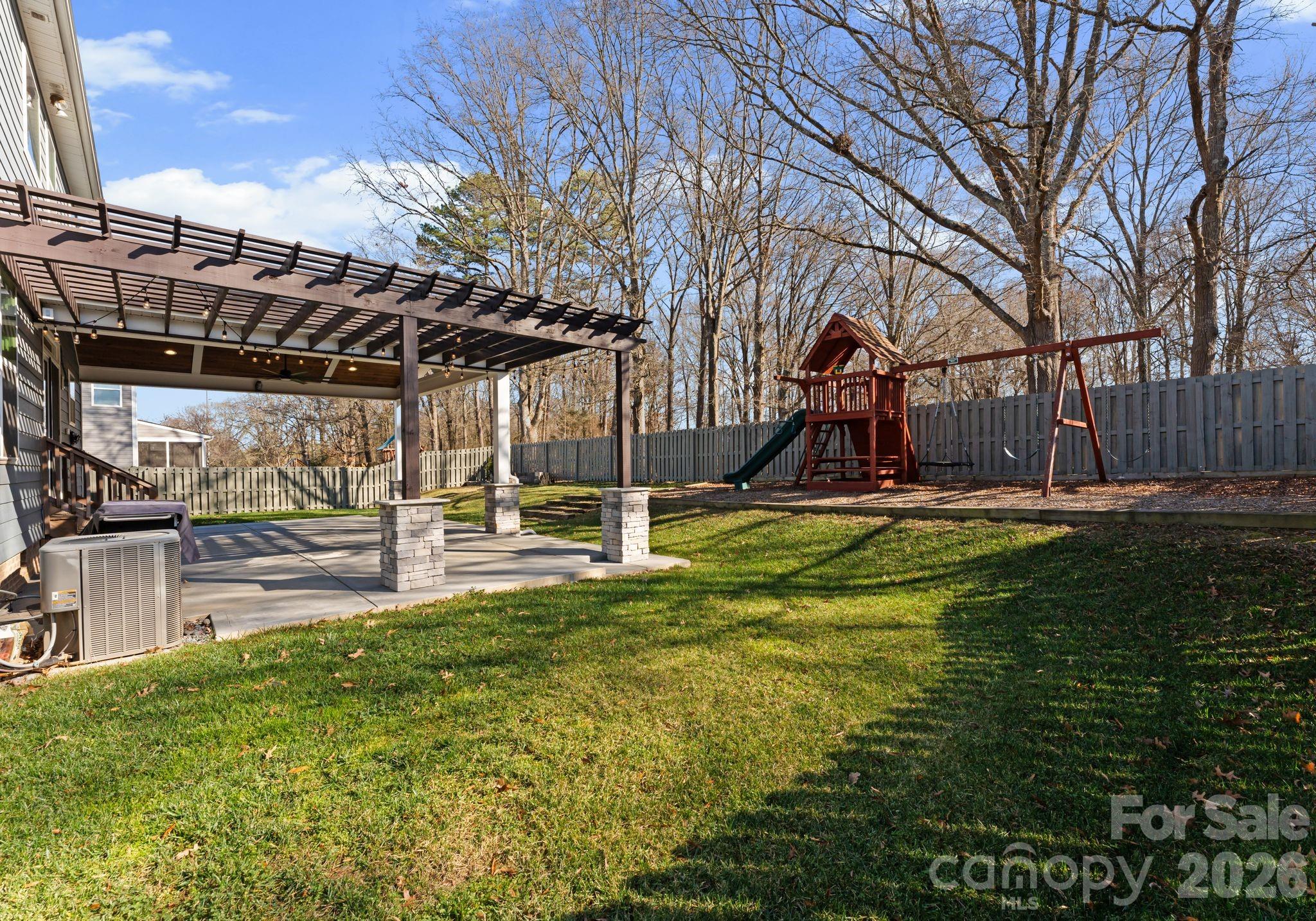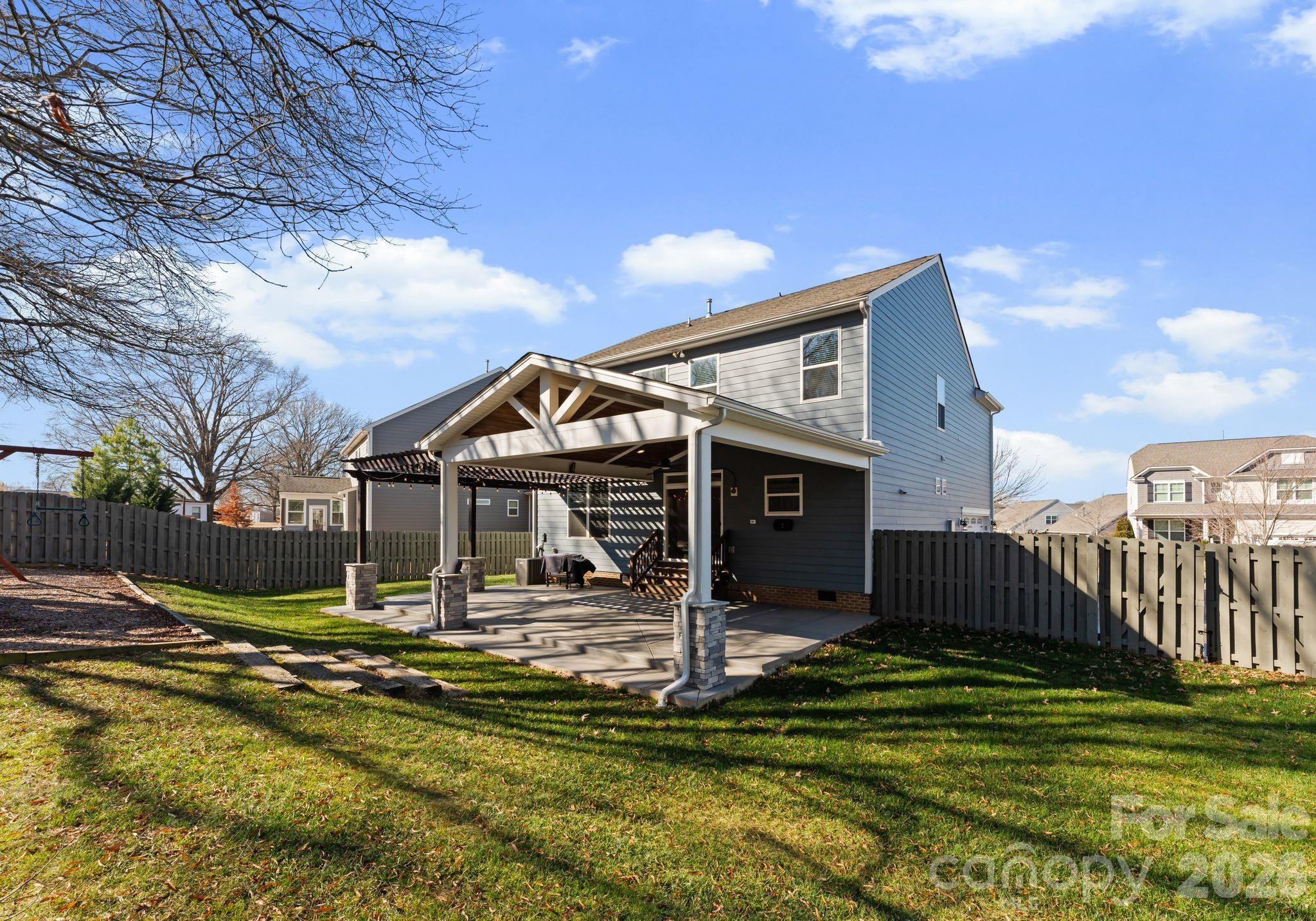 Step outside and the home truly comes to life. The large, fully fenced backyard offers privacy and room to enjoy the outdoors, creating a setting that feels both peaceful and functional. A massive covered patio with pergola anchors the space, providing the perfect spot for outdoor dining, relaxing, or entertaining in any season. With a gas line already in place for an outdoor kitchen, the backyard is ready to be taken to the next level. A dedicated fire pit area adds warmth and character, making the space just as inviting in the evenings as it is during the day.