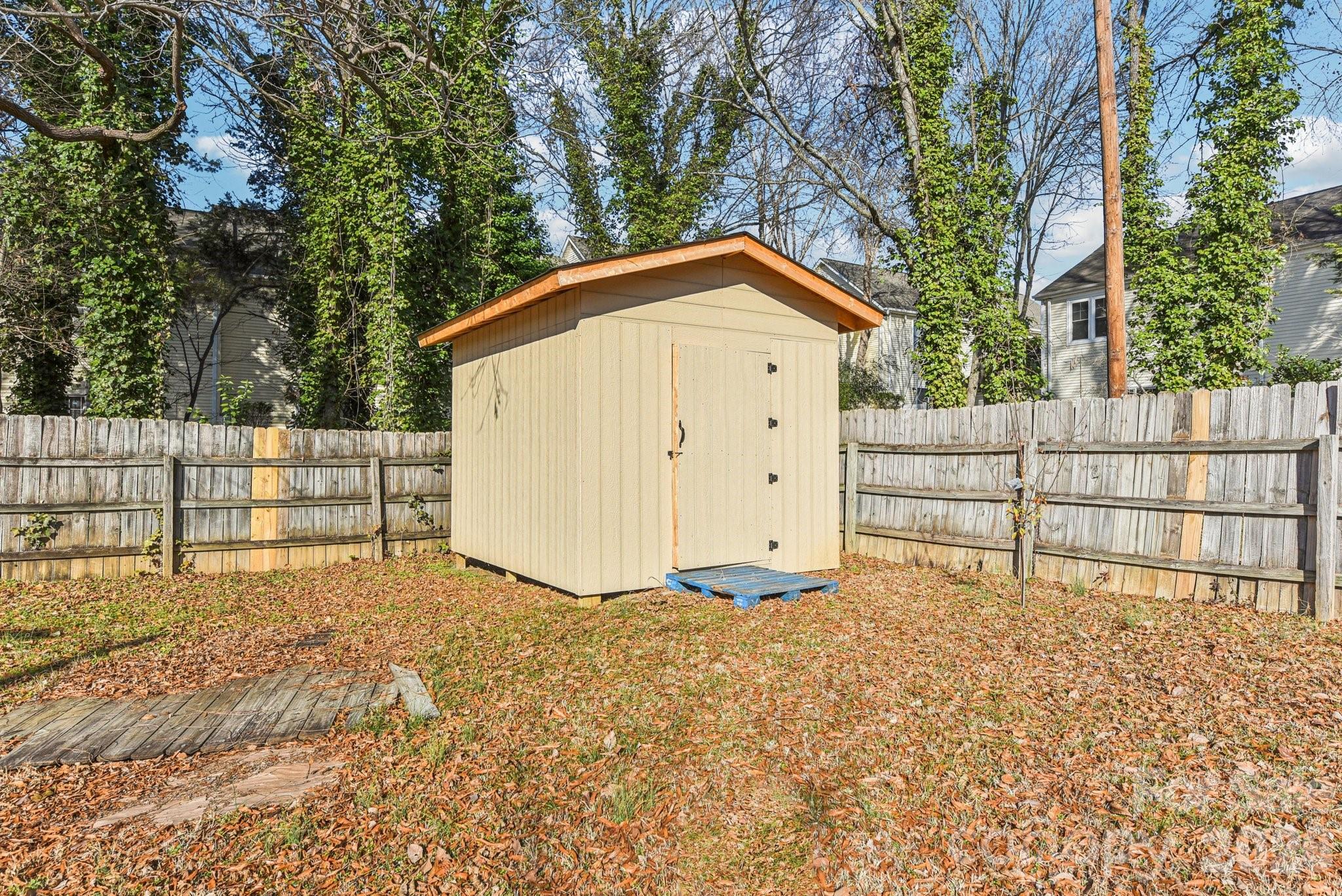 Nestled on a cul-de-sac with a large fenced yard, this home has 4 bedrooms and 2.5 baths. The kitchen opens to den with fireplace and hardwood floors. The bedroom on the main features a Cooper & Hunter split A/C unit. Three additional bedrooms are located on the upper level with plenty of space to accommodate . Appliances are staying so no need to have your own - refrigerator, electric stove/cooktop, dishwasher, microwave and the washer/dryer! Garage was converted in the 90’s and was permitted at the time. Mecklenburg County does not retain records older than six years. Your outdoor space also contains storage buildings. Come visit and make this one Home Sweet Home!