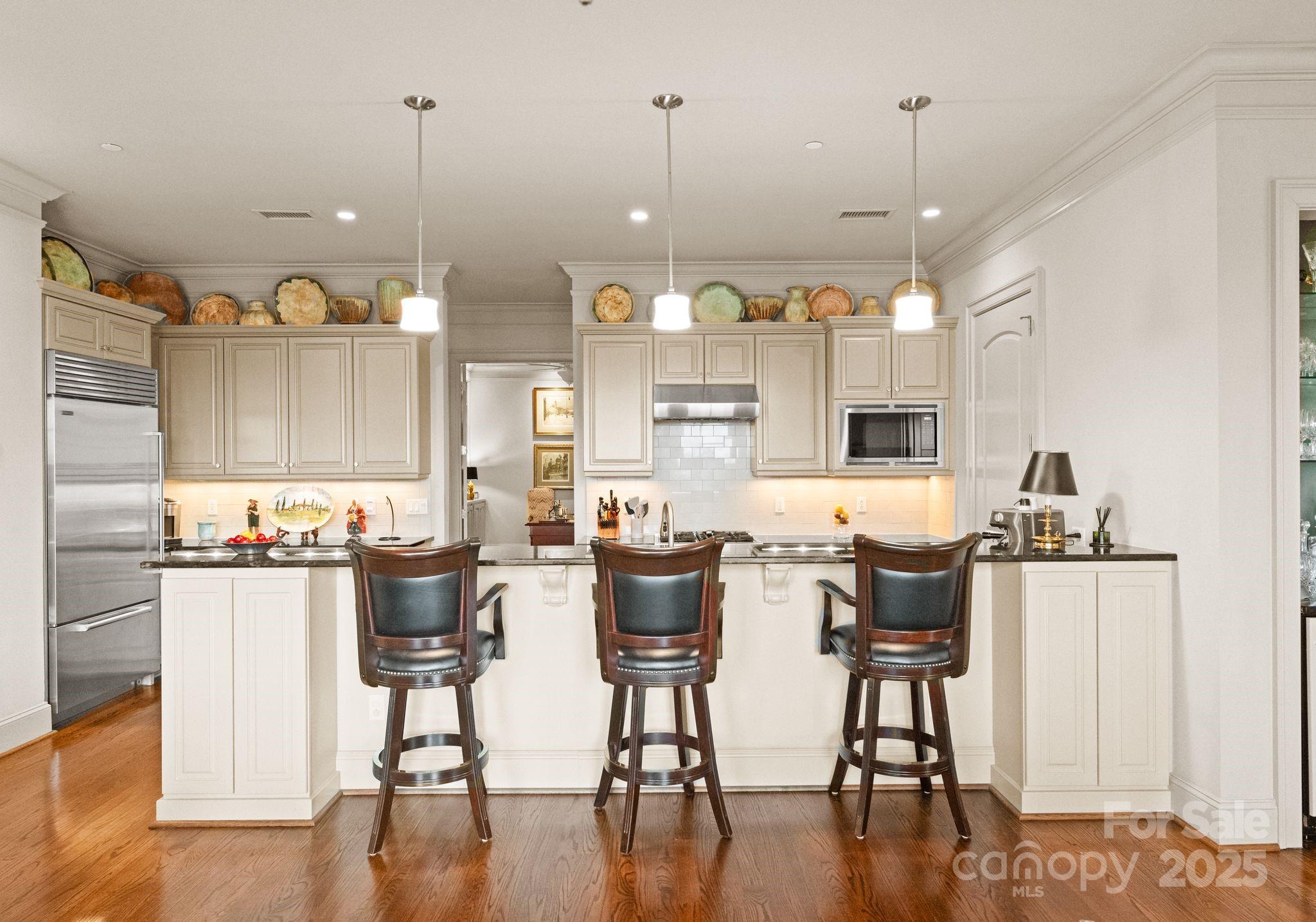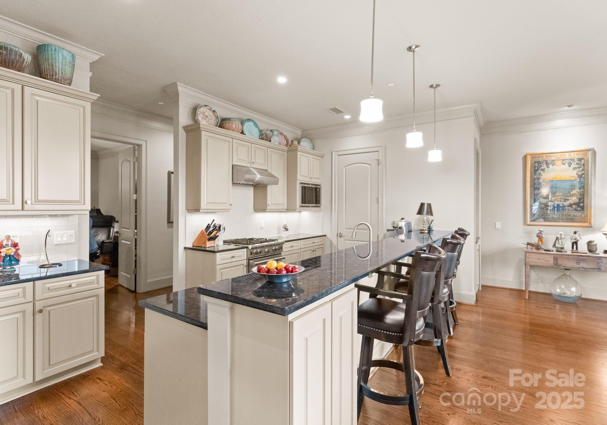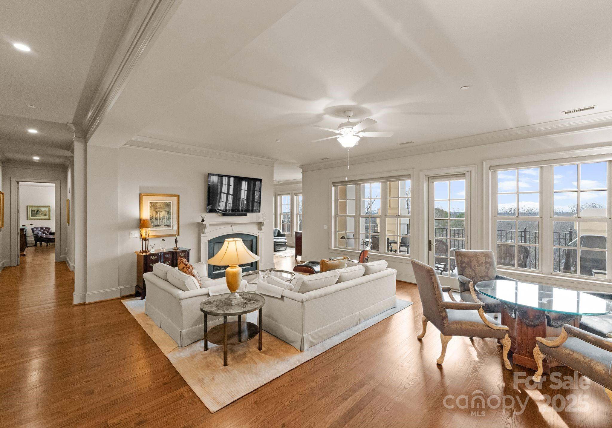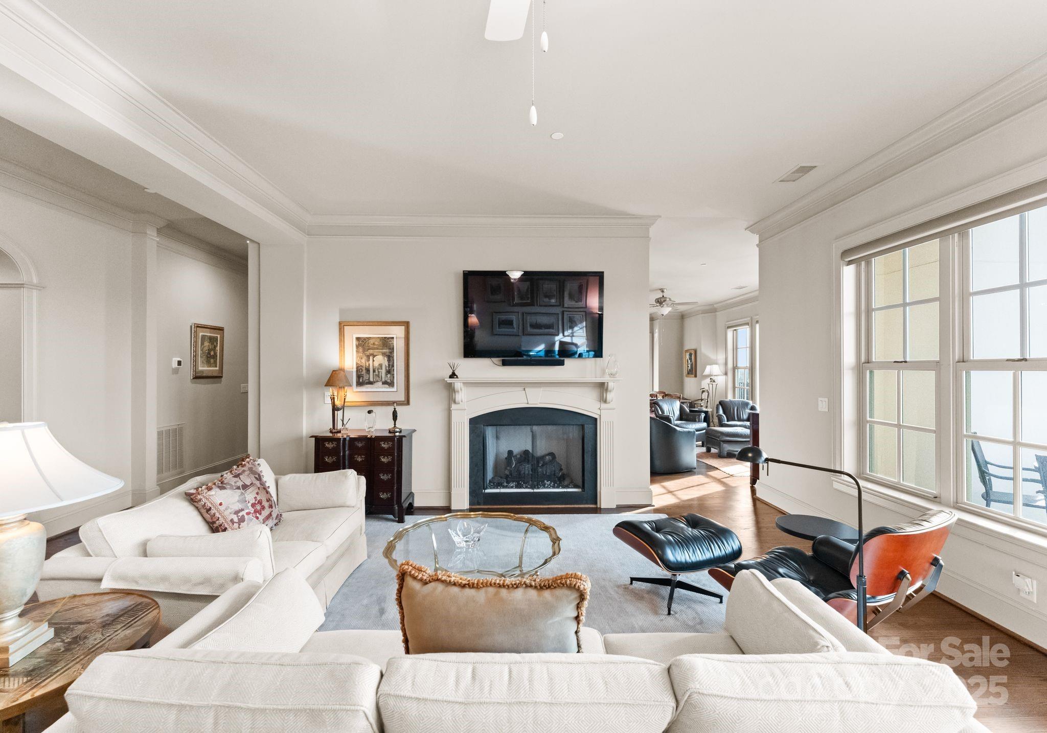 Elevate your lifestyle in this rare 3-bedroom, 3.5-bath penthouse residence in the prestigious Rosewood at Providence. Encompassing over 3,500 square feet, this exceptional home soars above the treetops and offers sweeping long-range views of the city and SouthPark. A gracious foyer and powder room welcome you inside, where timeless design, abundant natural light, and expansive living spaces set the tone. The elegant family room features a cozy gas fireplace and flows seamlessly into an oversized dining room—perfect for entertaining on a grand scale. The gourmet kitchen is ideally positioned for both everyday living and hosting.