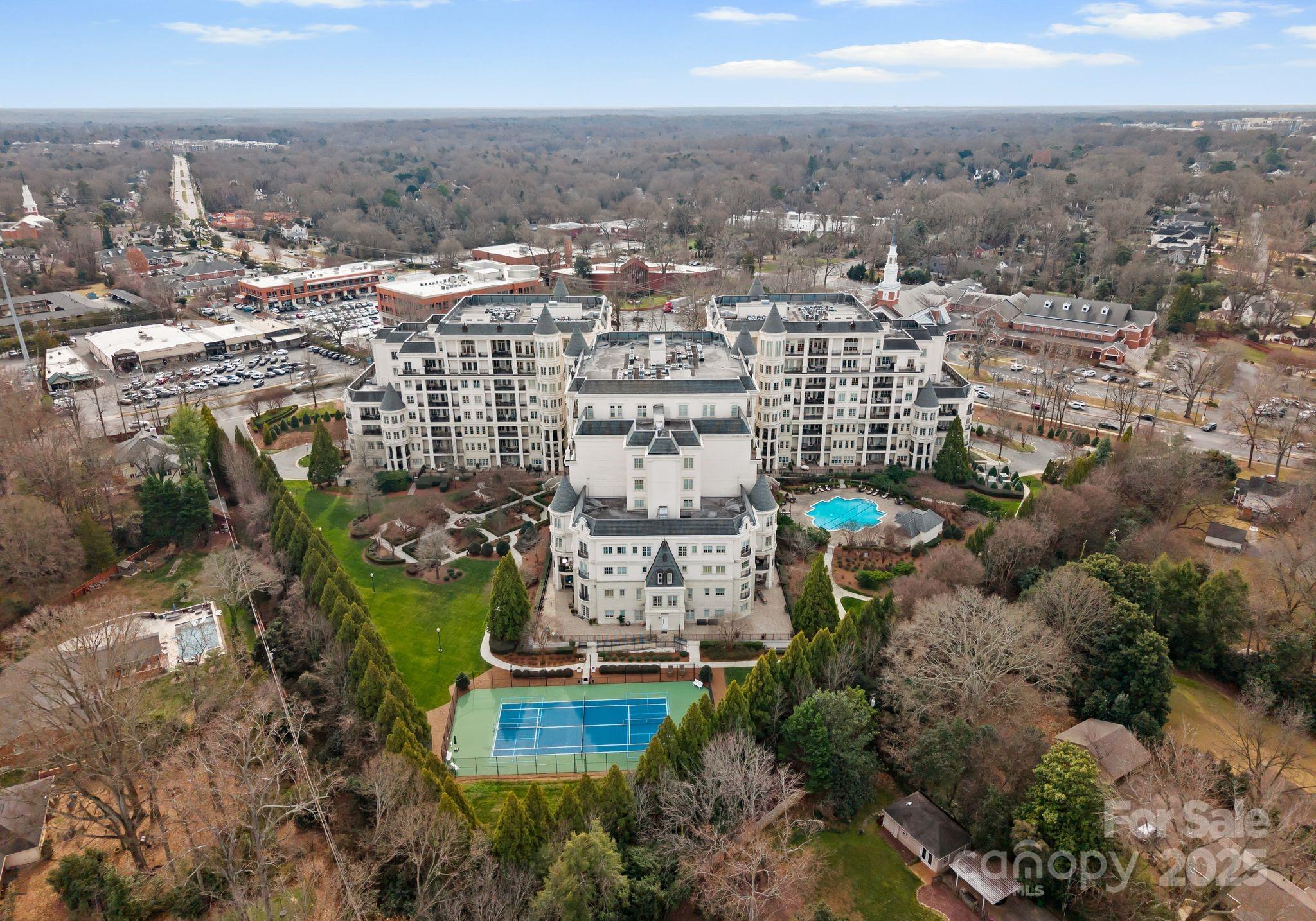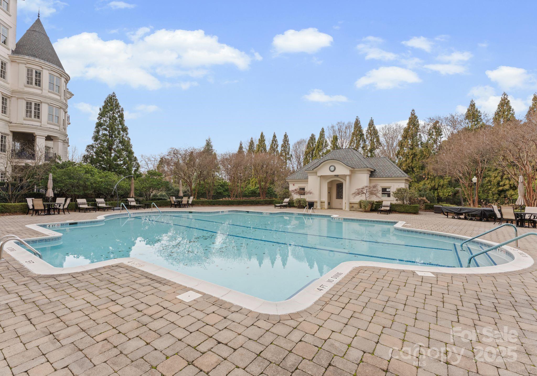 Residents of The Rosewood at Providence enjoy resort-style amenities including 24-hour security, concierge services, gated parking, business center, fitness center, outdoor pool, and tennis and pickleball courts, along with elegant gathering areas featuring a gourmet coffee bar, fireplace, and card room. This is refined condominium living at its very best.