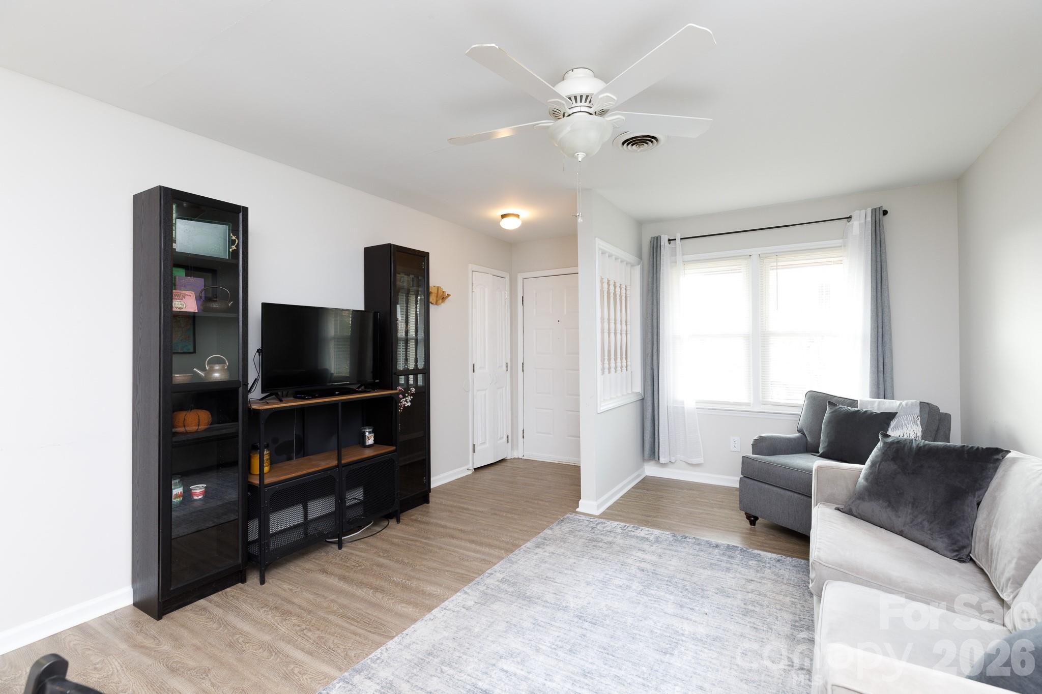 Single-story end unit townhome featuring a covered front porch and a private, fenced backyard with patio and storage room. This well-designed home offers 2 bedrooms and 1 bathroom with an open floor plan connecting the living room and oversized kitchen. The kitchen boasts abundant storage, freshly painted cabinets, and a convenient rolling island—perfect for everyday living and entertaining. Refrigerator, electric range, and dishwasher (purchased 2019) all convey. Quietly tucked away yet located in the heart of Rock Hill, just minutes from the university, shopping, restaurants, schools, and medical offices. Roof was replaced in 2025 by HOA. A rare combination of privacy and convenience—don’t miss this opportunity to own for less than you can rent!