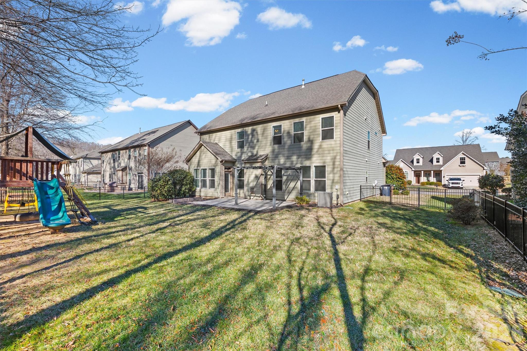 Beautiful, Move in Ready 5 Bedroom 3 Bath home located in The Enclaves at Crismark! This Craftsman-style residence welcomes you wit charming curb appeal and a spacious front porch. Inside, the home features a hardwood floored foyer, formal dining room, butler's bar, pantry, leading into an open-concept living room/kitchen perfect for everyday living and entertainment. The Kitchen is well appointed with dark wood cabinetry, granite countertops, stainless steel appliances, gas range, wall mounted oven, and a center island. The adjoining breakfast area, accented by plantation shutters, overlooks the fenced backyard with a peaceful wooded backdrop. Outdoor living is enhanced by a paver patio and trellis, creating an ideal space to relax and entertain. A main-level bedroom and full bath provide flexibility for guests or those seeking a stair free living option. Upstairs, the primary suite features including a tray celing and a en-suite bathroom with dual vaniites, private water closet, Shower, soaking tub, and large walk in closet. The neighborhood provides several amenties including pool and club house. Conviently located near the I-485 beltloop, travel around Charlotte is easy. We welcome you to come take a look at this beautiful home!