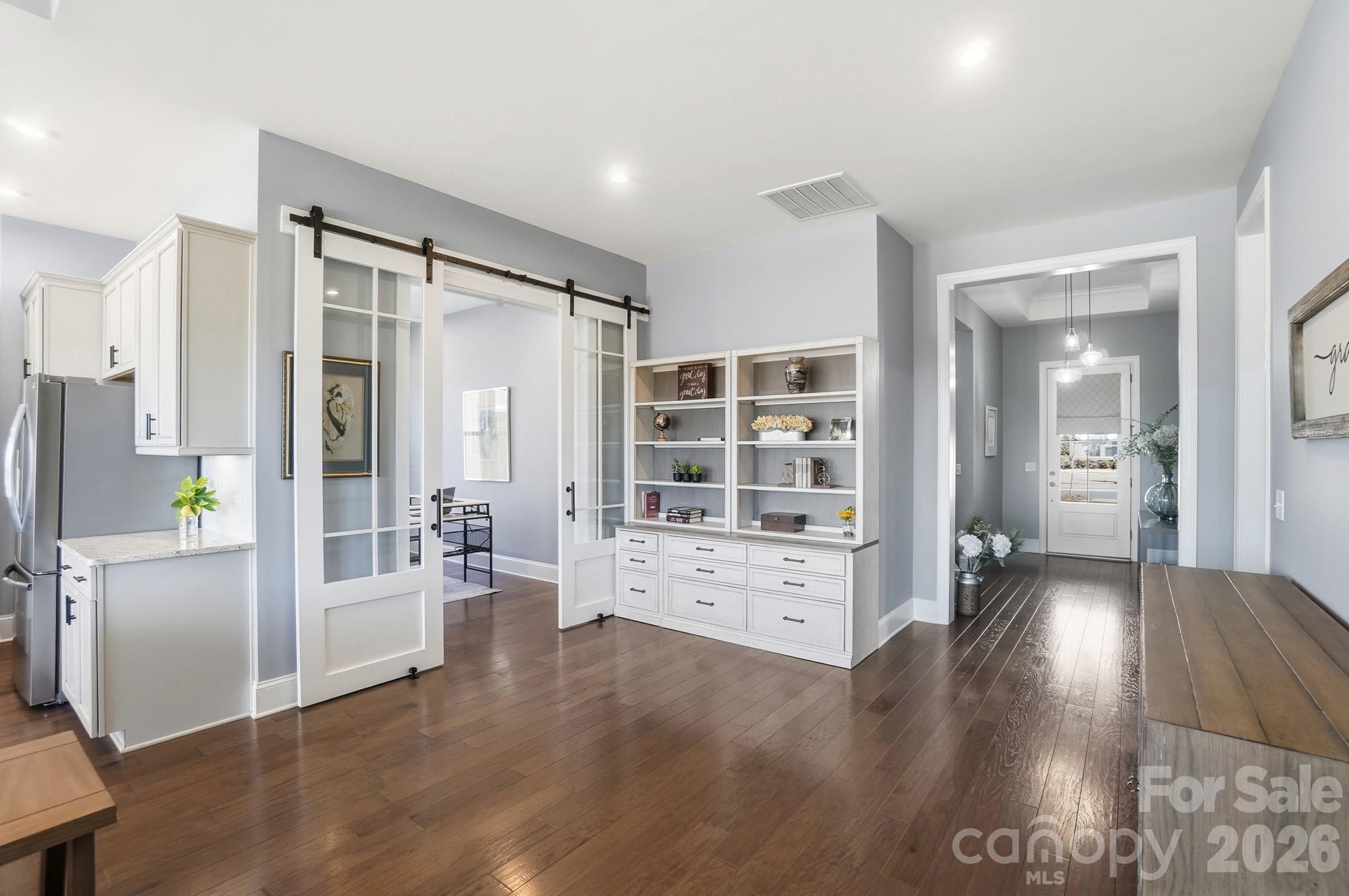 Thoughtful upgrades include custom closets in the primary and front bedroom as well as the laundry room. A stylish barn door leads to the serene and spa-like primary bath, adding both character and function.