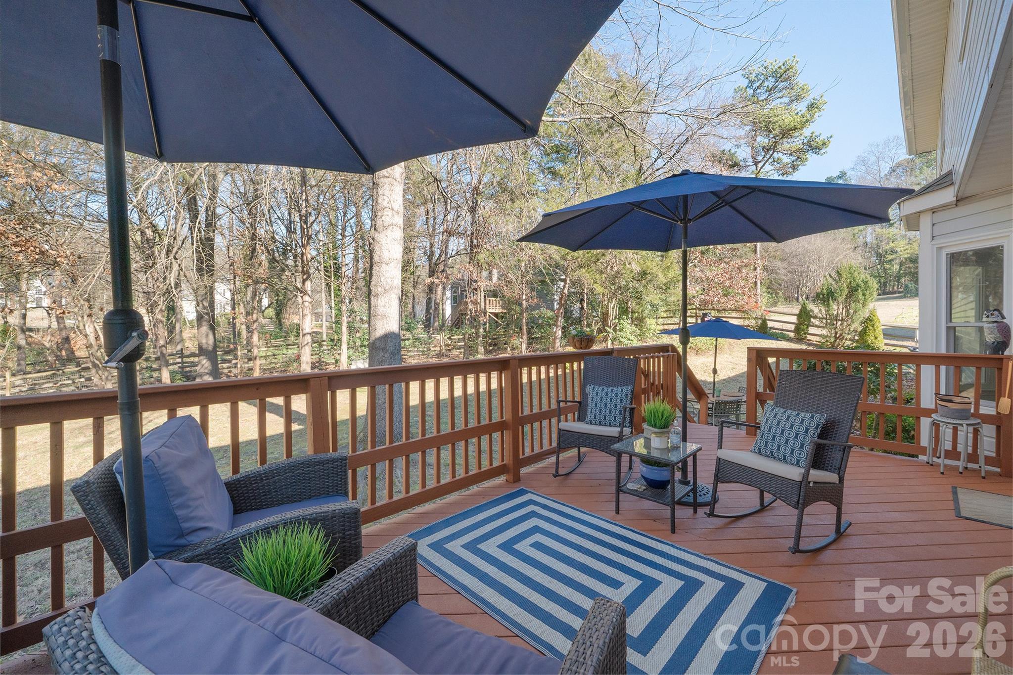 Motivated sellers will contribute $5,000 towards buyer expenses at settlement. This amazing five-bedroom home located in a quiet Cul-de-sac has been meticulously maintained and features smooth ceilings (excluding some closets). Recent upgrades include Pella low-e energy-efficient replacement windows installed in 2020 and custom Levolor window shades in the kitchen and family room. The open floor plan connecting the family room, breakfast area, and kitchen creates an ideal space for entertaining, centered around a cozy gas log fireplace. The main level offers a formal dining room with elegant wainscoting and a large den off the foyer, perfect for a relaxing reading area. Spacious owners suite with 4 other bedrooms conveniently located on the upper level. This home is equipped with dual HVAC systems and features a well-maintained wood deck overlooking a private, fenced backyard. Kitchen refrigerator and Washer and Dryer to remain. Residents enjoy access to the community pool and playground. Ideally located just off I-485, the property offers an easy commute to Charlotte, Concord, and Huntersville. This impressive home is aggressively priced.