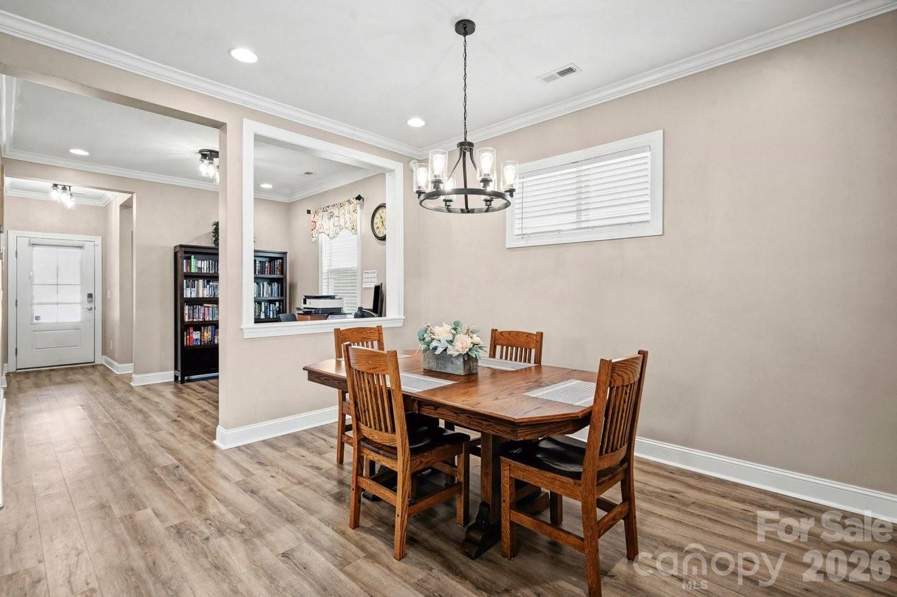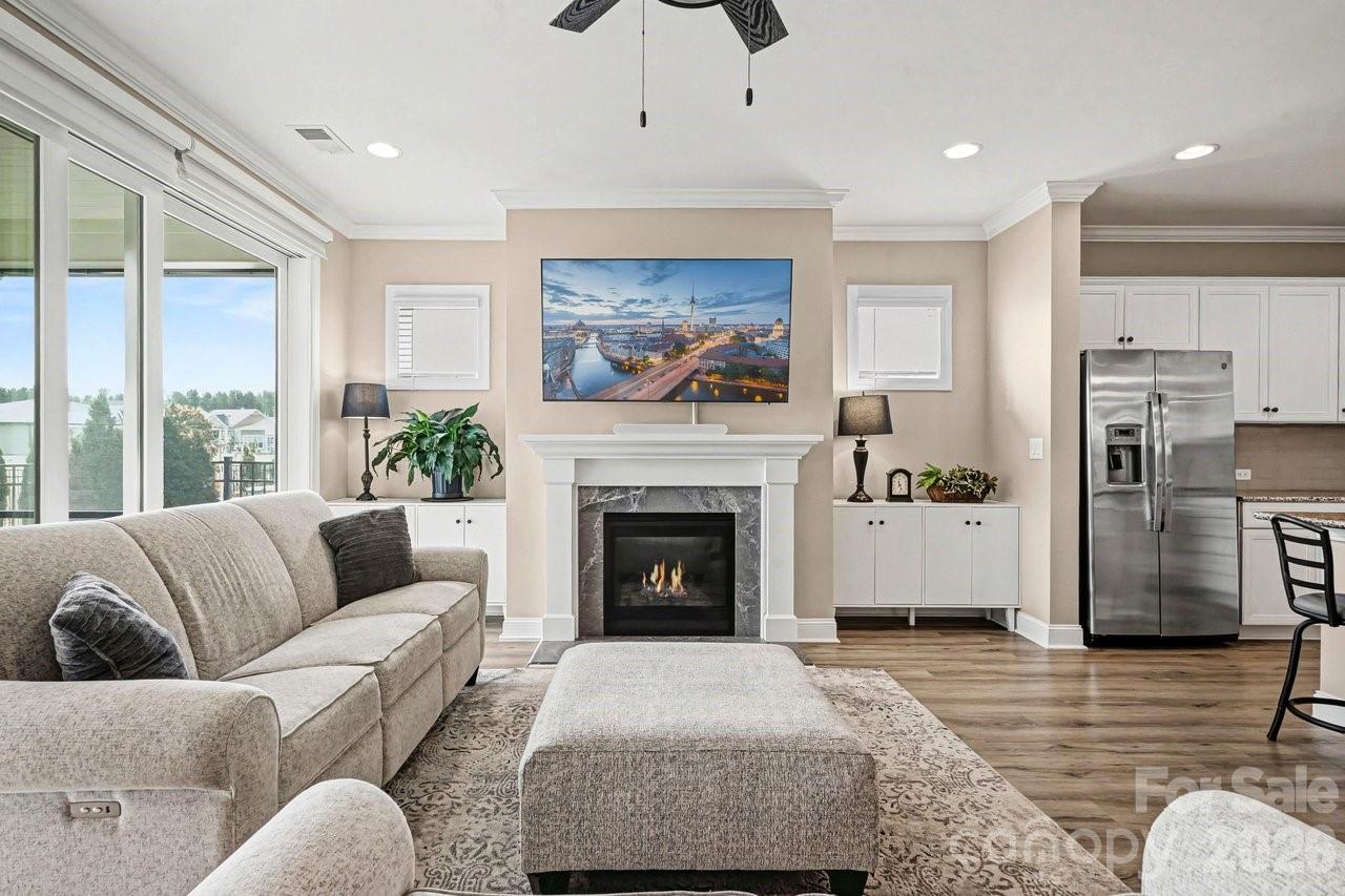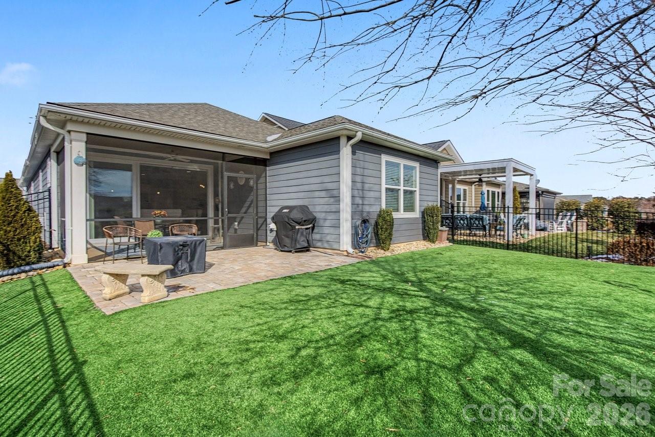 Watch the sun rise from this premium unobstructed common area view lot. Make yourself comfortable and enjoy the open concept Glory floorplan that has an amazing use of function and space. A well-appointed kitchen anchors the main living area and includes stainless steel gas appliances, granite countertops, tile backsplash, white cabinets, designer lighting and a large seating island. The adjacent great room is highlighted with a gas log fireplace flanked by custom cabinetry and wall of glass featuring electric shades, that flow on to the screened porch and patio extending in and outdoor entertaining areas. The rear fenced yard has a park-like setting, shade trees and synthetic turf for easy maintenance. Multiuse flex space adds versatility and the split bedroom plan offers privacy for guests. A serene master suite completes this home with dual sink vanity, tile floor in the bath with a generous walk-in custom closet and tiled shower. Low maintenance LVP and tile floors throughout the home. Trilogy Membership includes Freedom Boat Club on Lake Norman plus award winning amenities.