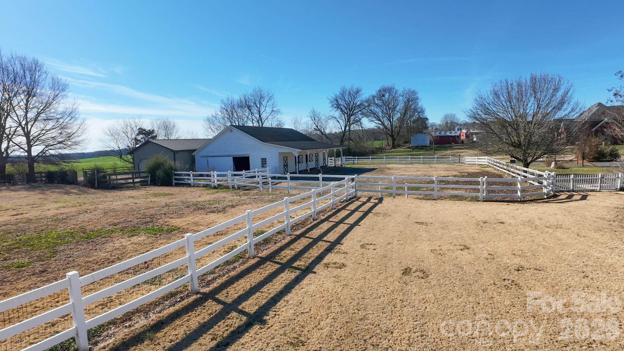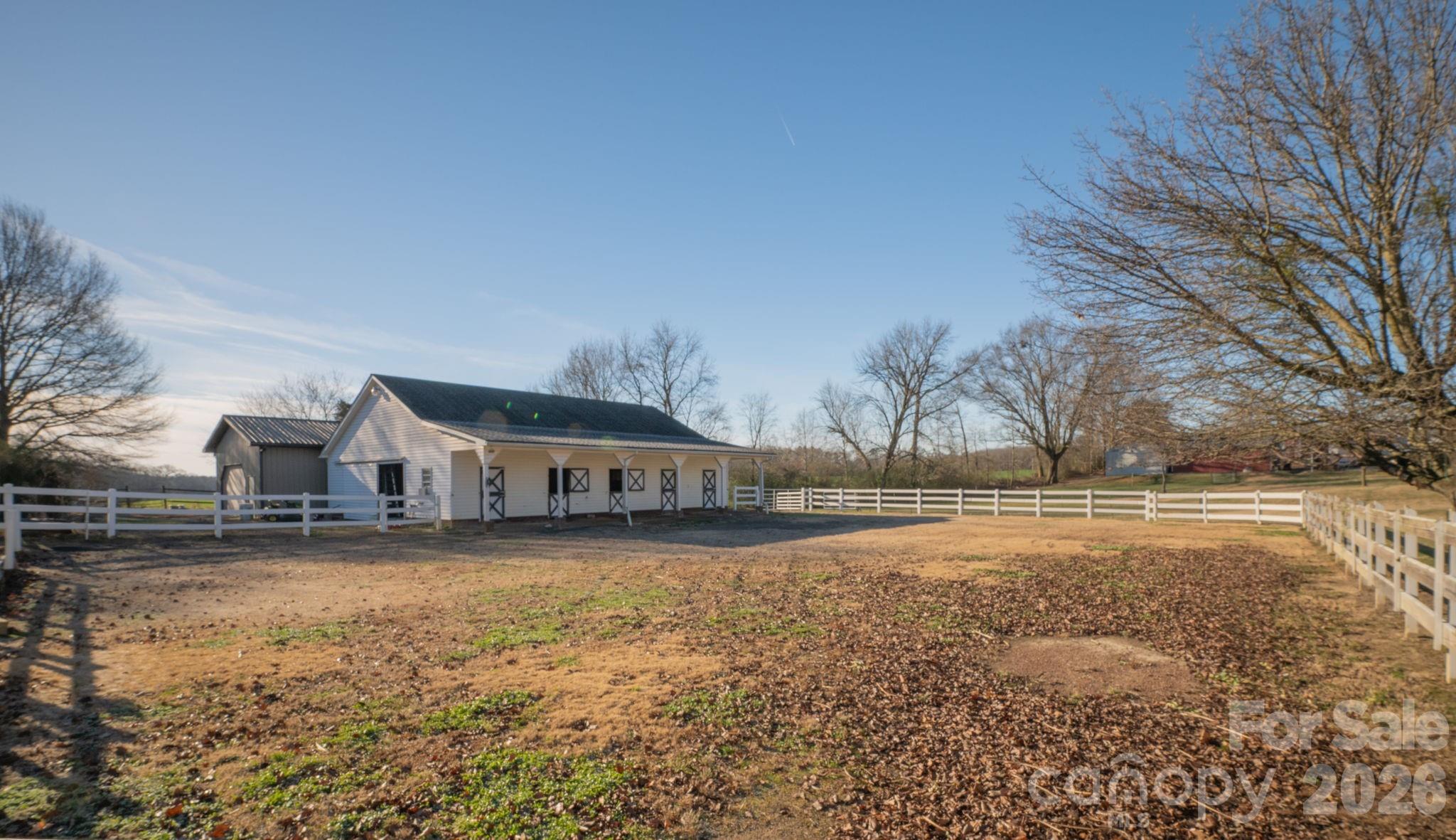 Honey Trout Farm offers an ideal setup for buyers with multiple interests. Located in the Piedmont School District at the end of a long paved driveway, this property features a well-established horse farm surrounded by similar acreage properties. Equestrian amenities include a 5-stall barn with stall mats, fans, fly mist system, walk-up hay loft, wash and tack areas, and four stalls with Dutch doors opening to the dry lot/riding area. Horses also have access to two fenced pastures with 3-board, vinyl, and/or electric fencing, one with shade trees.