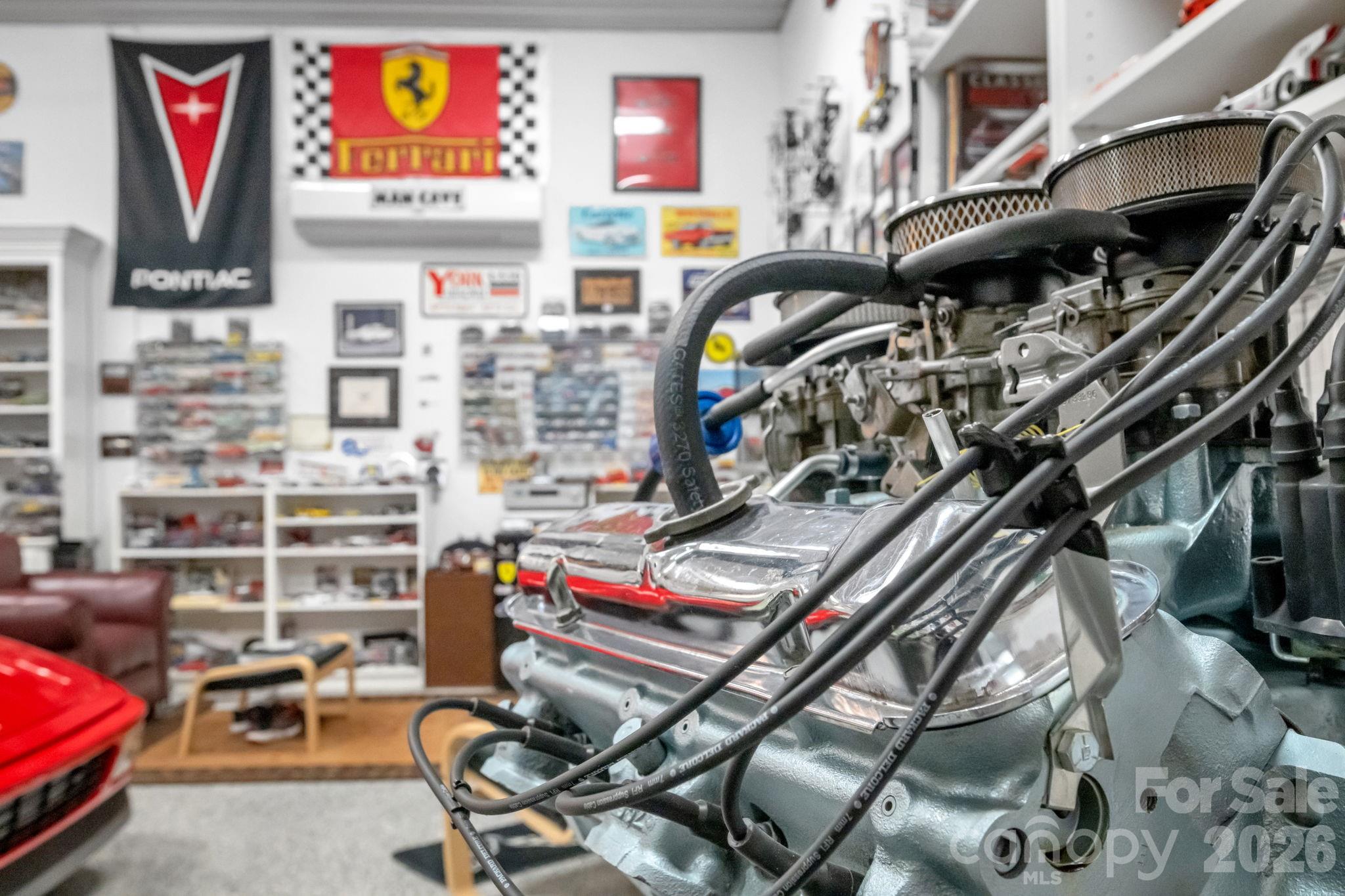 The grounds are thoughtfully landscaped with established flower beds, hydrangeas, river birch trees, and a pond that adds both visual interest and a natural outdoor gathering point. A separate shop building includes a climate-controlled, finished lounge or playroom, providing flexible space for hobbies, vehicles, recreational equipment, or workshop use.