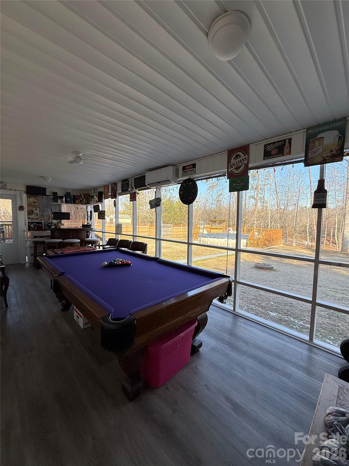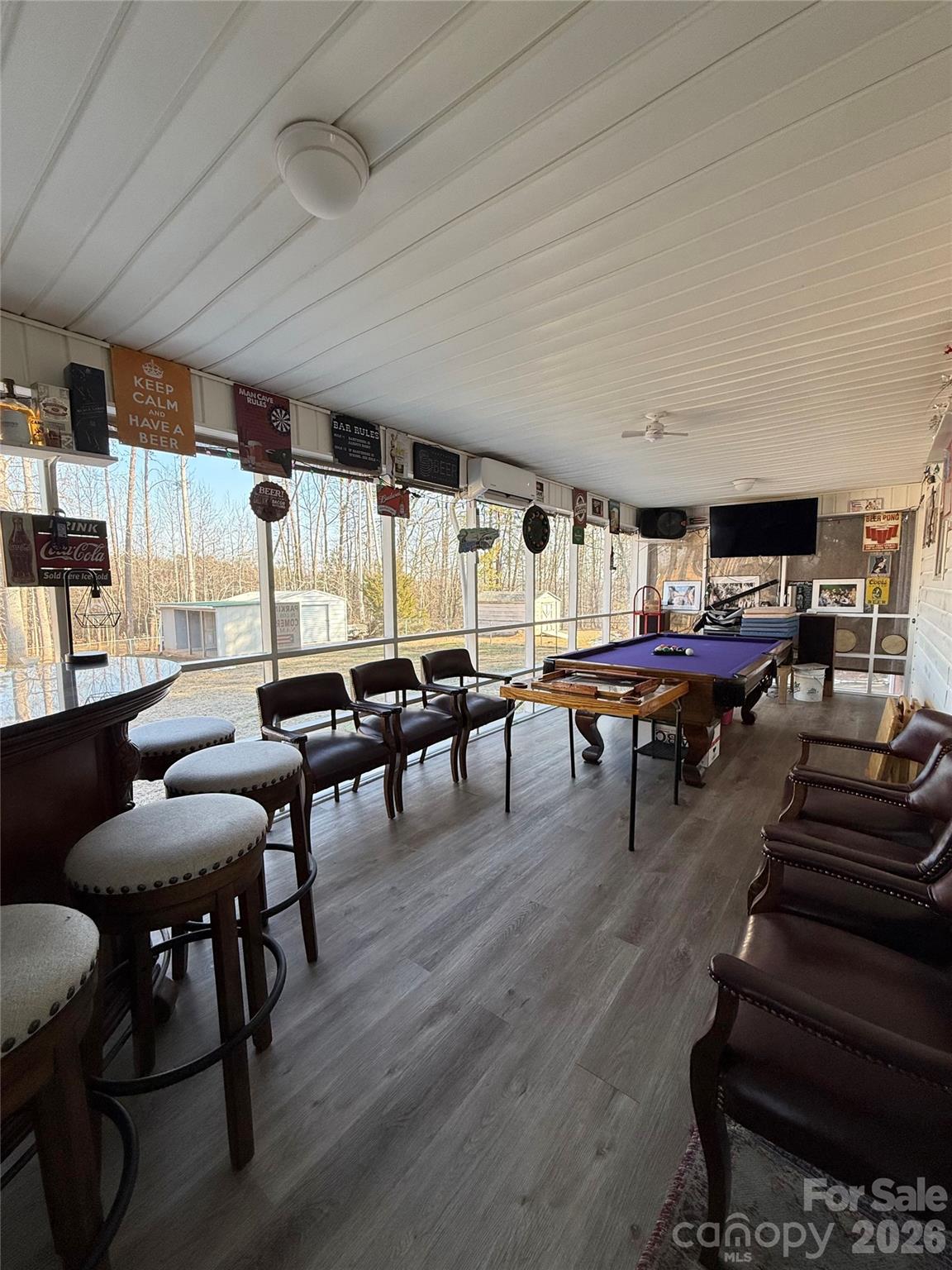 Bar, Pool Table, Stools, and chairs can remain