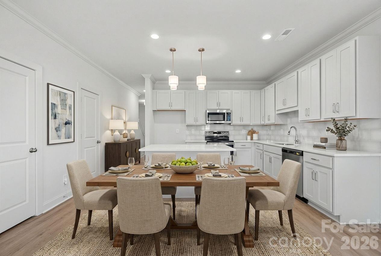 This craftsman-style end-unit home offers modern design and everyday convenience. The open floor plan features a spacious kitchen with large island, maple cabinetry, quartz countertops, tile backsplash, and stainless steel appliances. Upstairs are three bedrooms and two full baths, including a generous primary suite with dual closets and double vanity, plus a walk-in laundry room. This unit includes a fully fenced in private yard with patio and a CPI security system with 12 months of monitoring. And with no HOA dues, plus up to $20,000 in closing cost assistance available with the preferred lender, this is an incredible opportunity in a central, fast-growing location. Enjoy walking to NoDa Brewing Co. and quick access to Camp North End and the shops and restaurants of NoDa!