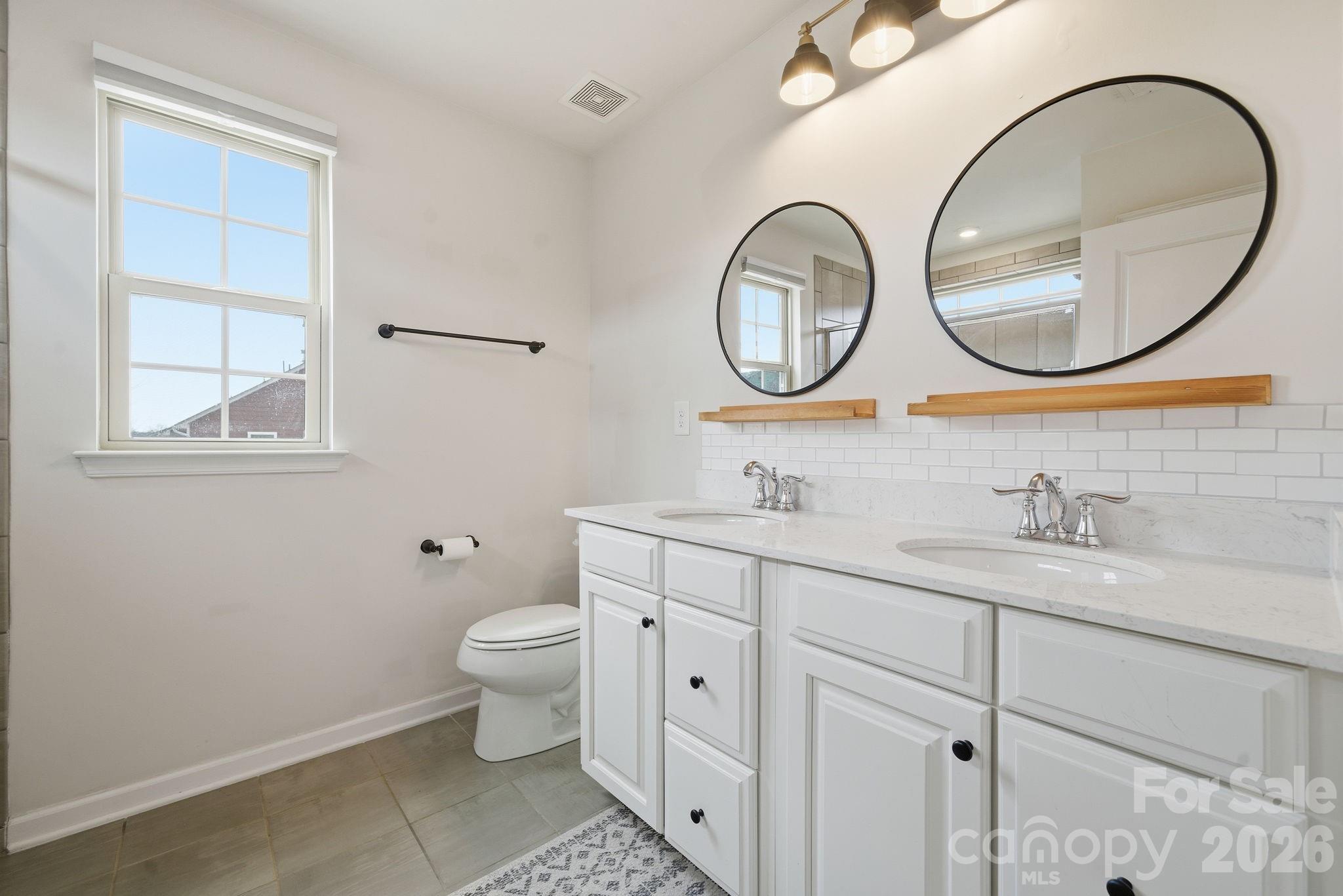Upstairs, you’ll find two secondary bedrooms sharing a well-appointed hall bath, along with a laundry room conveniently located on the bedroom level. The primary suite is generously sized with a walk-in closet and a beautifully finished en suite featuring a double vanity, tiled shower, and linen closet for added storage.