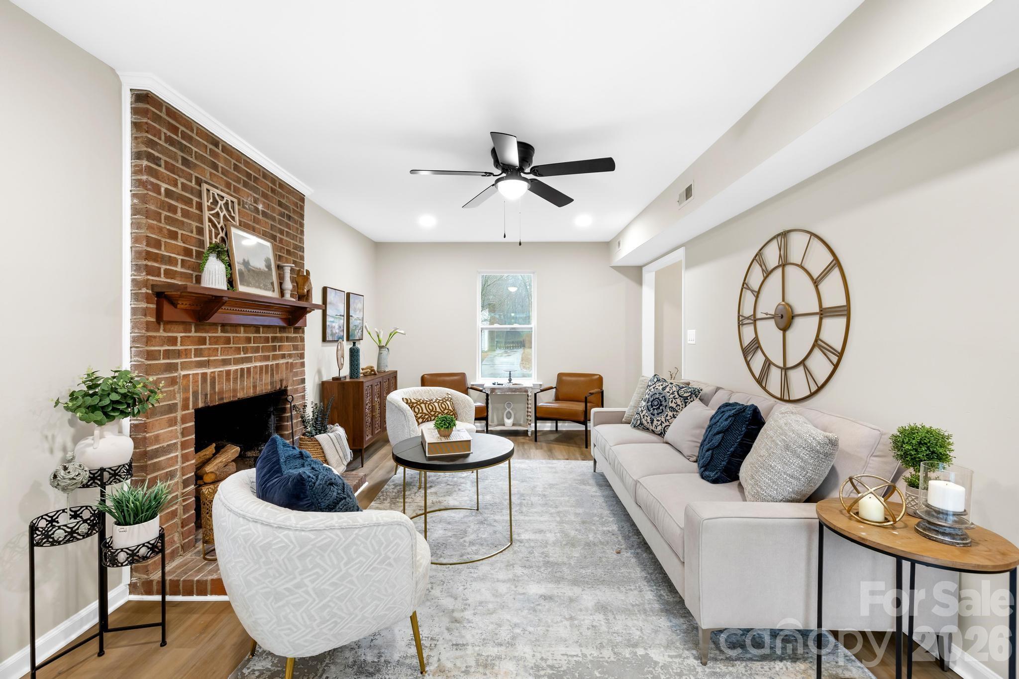 Classic colonial charm meets modern sophistication in this beautifully renovated Charlotte gem. Step inside to find a seamless floor plan bathed in natural light, featuring brand-new LVP flooring that flows through the spacious living areas. The heart of the home is the stunning kitchen, boasting sleek quartz countertops, a cozy breakfast nook, and an effortless transition into the formal dining room—ideal for hosting dinner parties. Relax by the crackling wood-burning fireplace in the expansive living room or retreat upstairs to the plush, newly carpeted bedrooms. This home offers incredible peace of mind with a new roof (2021) and fresh vinyl siding. Situated on a lush .21-acre lot, you are perfectly positioned for a quick 15-minute commute to Uptown, University City, or the boutique shopping and dining of Matthews Township. Experience the perfect blend of timeless style and contemporary comfort in a location that puts the best of Charlotte at your doorstep.
