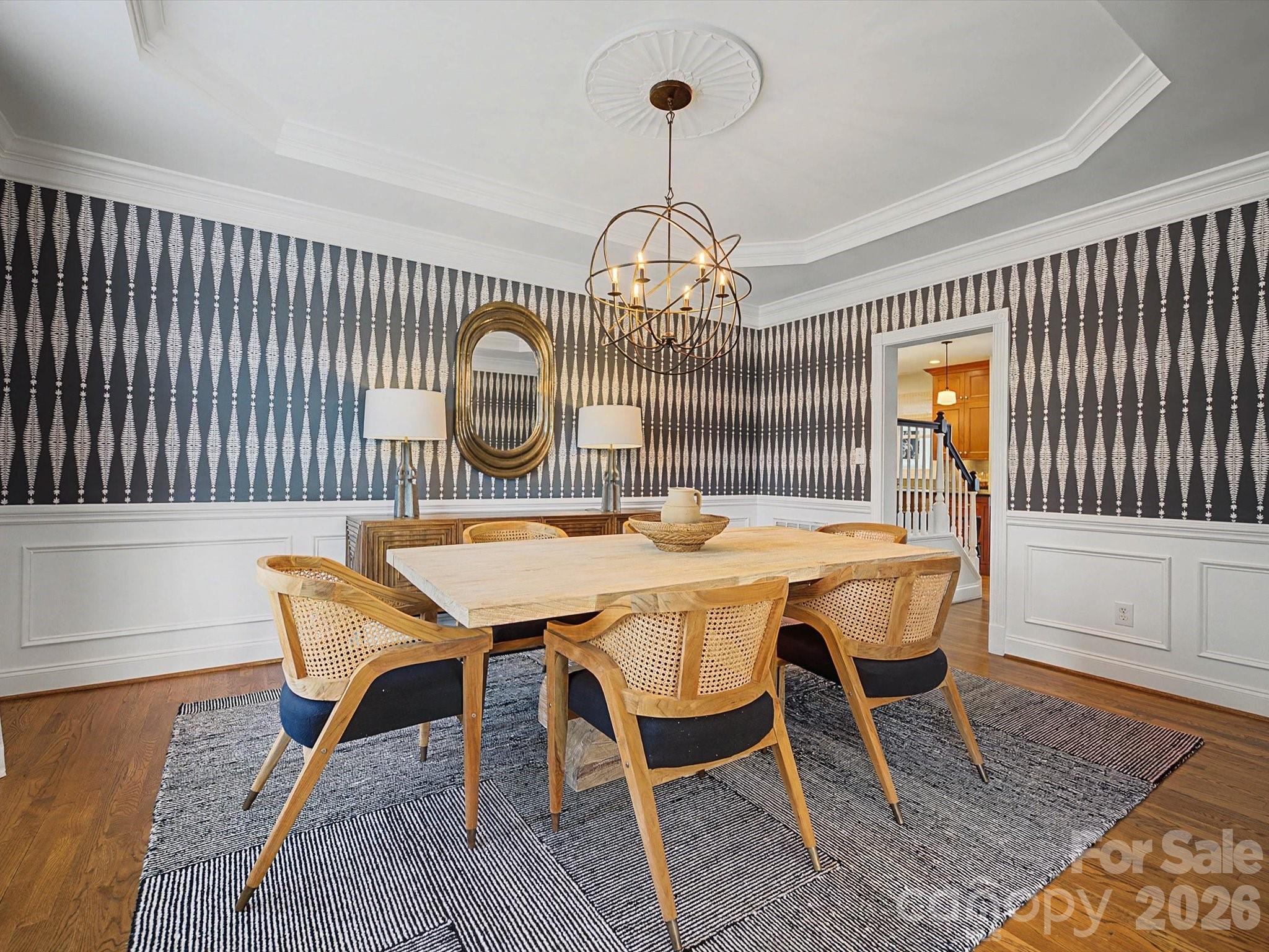 The main level features expansive living areas and an open flow perfect for entertaining. Gleaming hardwood floors and heavy custom millwork create an atmosphere of warmth and sophistication throughout. The chef’s kitchen has been thoughtfully updated with designer finishes, offering plenty of cabinetry, premium appliances, and a large center island — ideal for both casual meals and large gatherings.