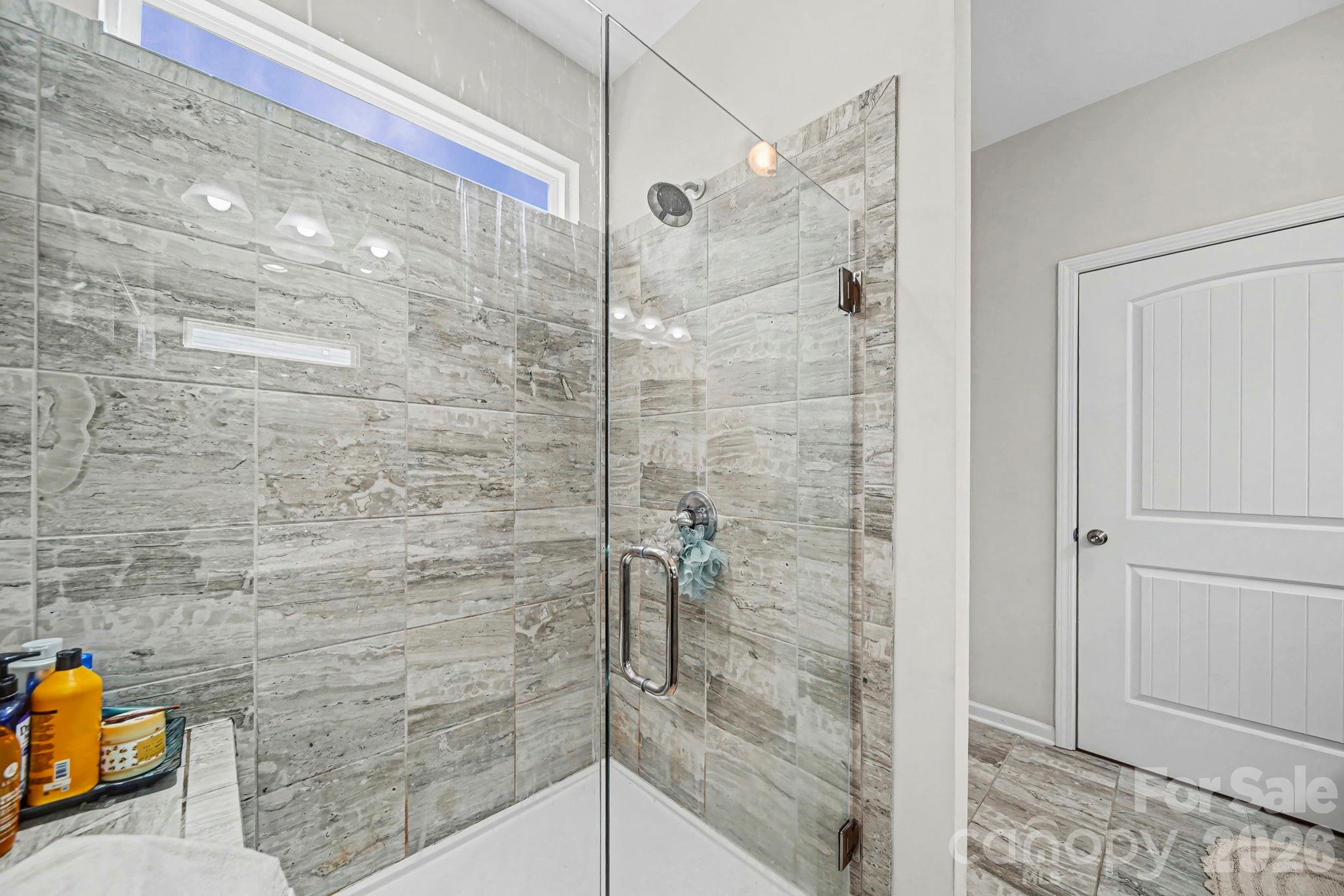 The primary suite offers a relaxing retreat, highlighted by a **large walk-in shower in the main bathroom**, giving it a clean, spa-inspired feel. Two additional bedrooms provide comfortable space for family or guests.