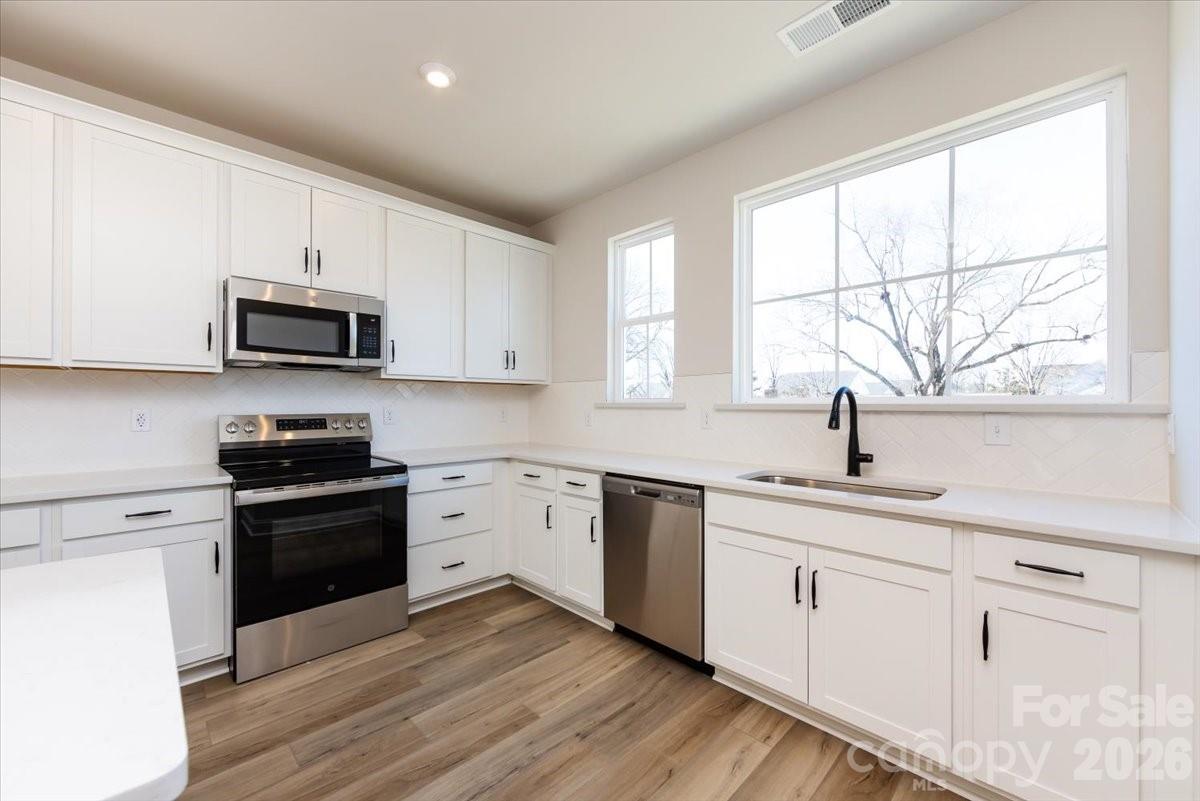 4623 Swan Meadow Ln presents the Paloma plan, the largest floor plan at Bellflower, this home offers 4 bedrooms and 3.5 baths in a spacious, thoughtfully designed layout. As an end unit, this home enjoys additional windows that fill the interior with natural light, creating a bright and welcoming atmosphere throughout. A fourth bedroom with a full bath on the first floor adds flexibility for guests, a private office, or multigenerational living. Oak box stairs with open rails on both levels enhance the open feel and add architectural character from floor to floor. At the heart of the home, a chef-inspired kitchen makes a striking statement with dual-color cabinetry, featuring a warm brown island paired with white perimeter cabinets and quartz countertops. A large kitchen sink with a Delta Essa Touch faucet blends functionality with modern convenience, making everyday tasks effortless. Upstairs, the primary suite offers a refined retreat with warm brown cabinetry and white countertops in the bath, creating a cohesive and elevated design. Located within Bellflower, a community known for its inviting green spaces and dedicated dog park, this home combines light-filled living, flexible space, and thoughtful finishes in a setting designed for connection and comfort.