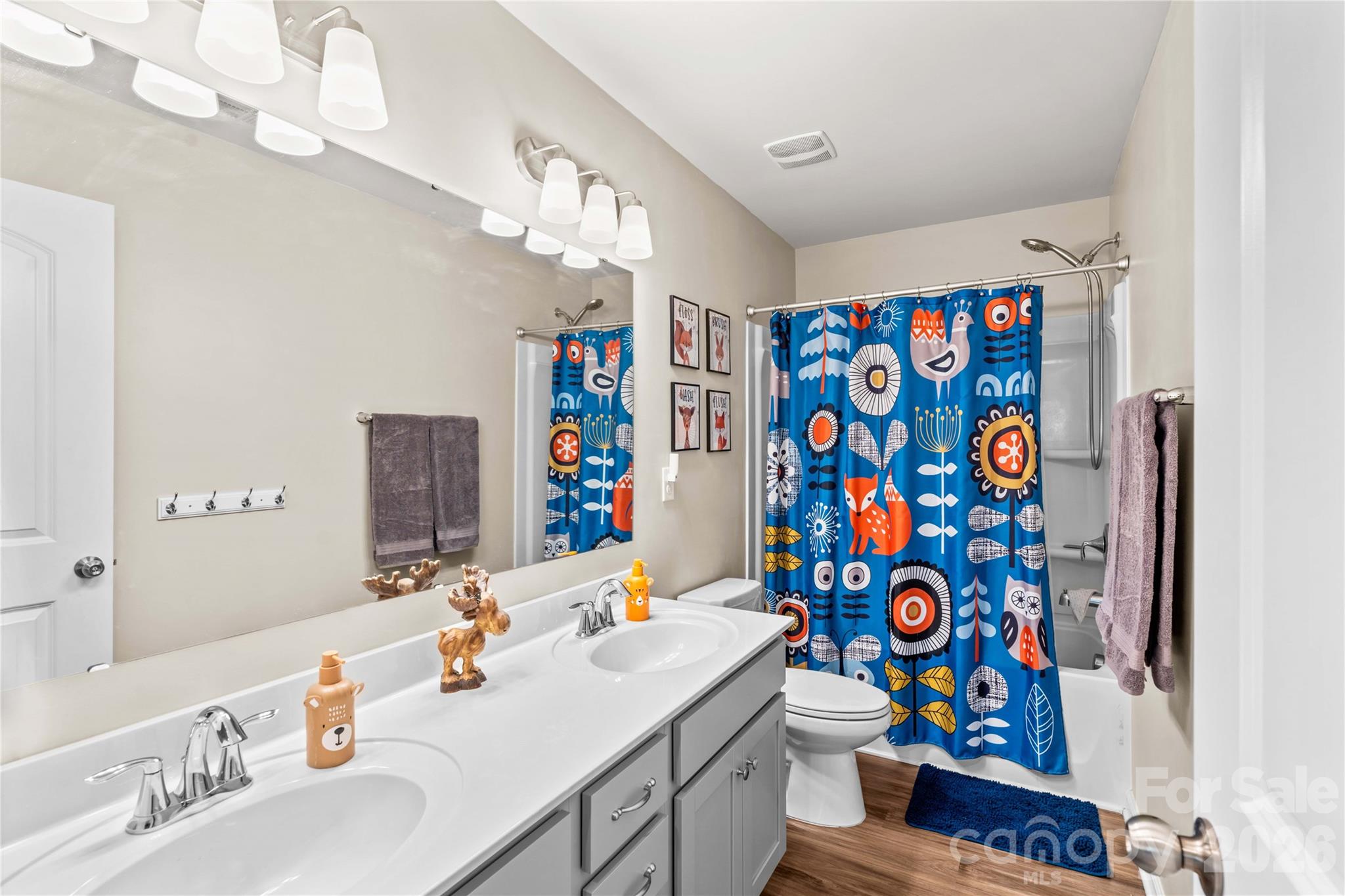 Location & Charm! From the covered front porch to the rear fenced yard, this home is such a charmer. With the easy access to downtown Charlotte as well as the airport, not to mention the waters of Lake Norman, the location is unparalleled. Through the storm door, the front foyer greets you - perfect drop zone location. The 9' ceilings, open floor plan and thoughtfully designed kitchen with dove gray cabinets, gas range, ample tiered cabinets and pull-up eating bar with pendant lights boast the open concept so many are looking for in a home. The kitchen also features subway tile backsplash and granite countertops, enhancing the ample counter space and overlooks the dining area and great room. LVP floors run throughout the main-level living area into the main-level primary suite, so not a stich of carpeting on the main! The primary suite is adorned with dual vanities, a step-in shower and a large, walk-in closet with custom built-ins. Upstairs features a large bonus area for play, movie time or just having a secondary entertaining area. Three ample-sized bedrooms up - all having ceiling fans and walk-in closets. As well, current owners added storage space closet under the stairway for additional storage as well as updated lighting fixtures. Outside, enjoy the back patio and fenced yard - perfect for your two or four-legged companions. Don't miss the walkability to the playground - just a few houses down on the left hand side. This home has been lovingly cared for and is awaiting it's new owner!