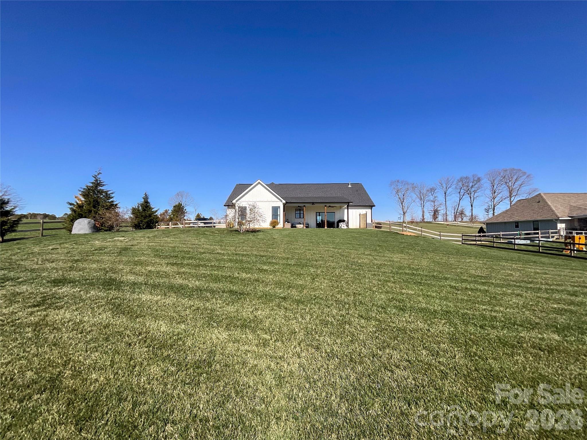 The perfect blend of privacy and convenience just minutes from downtown Waxhaw! This modern farmhouse sits on a beautifully manicured one-acre lot, with flowering cherry trees lining the driveway for the perfect first impression. Enjoy relaxing on the spacious covered front porch or entertaining on the large covered back patio overlooking the stunning fenced backyard.Inside, the open floor plan features a vaulted ceiling and floor-to-ceiling shiplap framing the cozy gas log fireplace. Large Chefs kitchen is designed for gathering, complete with a large island, abundant cabinetry, granite countertops, stainless steel appliances, and a walk-in pantry. The main-level laundry room with side entry adds everyday convenience to this thoughtfully designed home.The split-bedroom layout offers privacy, with a primary suite showcasing tray ceilings and a spa-like bath featuring double vanities, a standalone soaking tub, and a separate shower. Two additional bedrooms on the main level share a full bath with double vanities. Upstairs, you’ll find a spacious fourth bedroom with a full bath, plus a bonus room perfect for a home office or flex space. Every detail has been thoughtfully designed for comfort & elegance. Don't miss this remarkable opportunity.