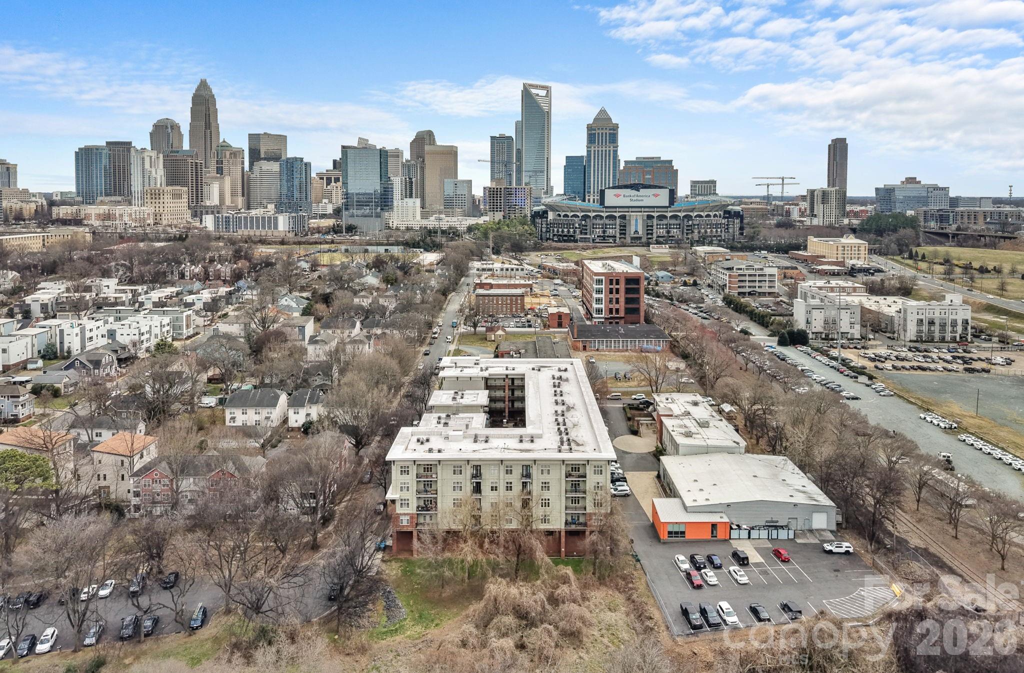 In the heart of 3rd Ward and truly walkable to Uptown, this 2-bedroom, 2-bath corner condo puts the city at your doorstep. Catch a Panthers, Charlotte FC or Knights game, hit the greenway, grab coffee or dinner, all without moving your car. When you’re ready to slow it down, come home to a space that feels bright, open, and easy. New lighting throughout and an updated kitchen with new countertops and appliances give it a fresh, modern look that flows seamlessly into the living area. Large windows bring in natural light and the covered balcony is the perfect spot to start or end your day. The mature trees lining the edge create a peaceful retreat just minutes from the energy of Uptown. Both bedrooms feature new carpet for a clean, comfortable finish. The interior courtyard offers grills and seating areas with skyline views peeking over the building. Frazier Park, with a playground, dog park, walking trails, tennis and basketball courts, sits right next door. Secure elevator building with key fob access and gated garage parking, including one assigned space. Fully move-in ready with the refrigerator, washer, and dryer included. A rare chance to get location, updates, and true walkability all in one.