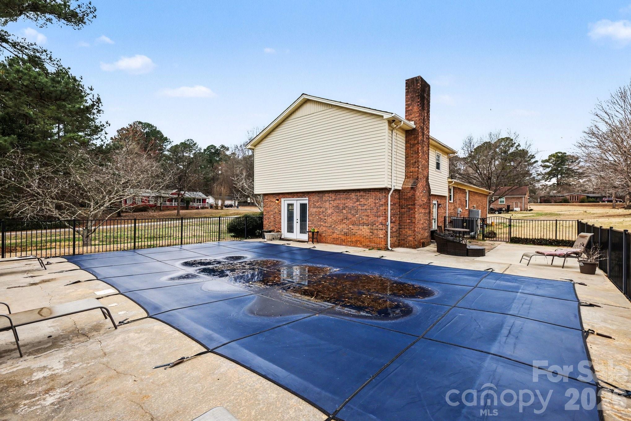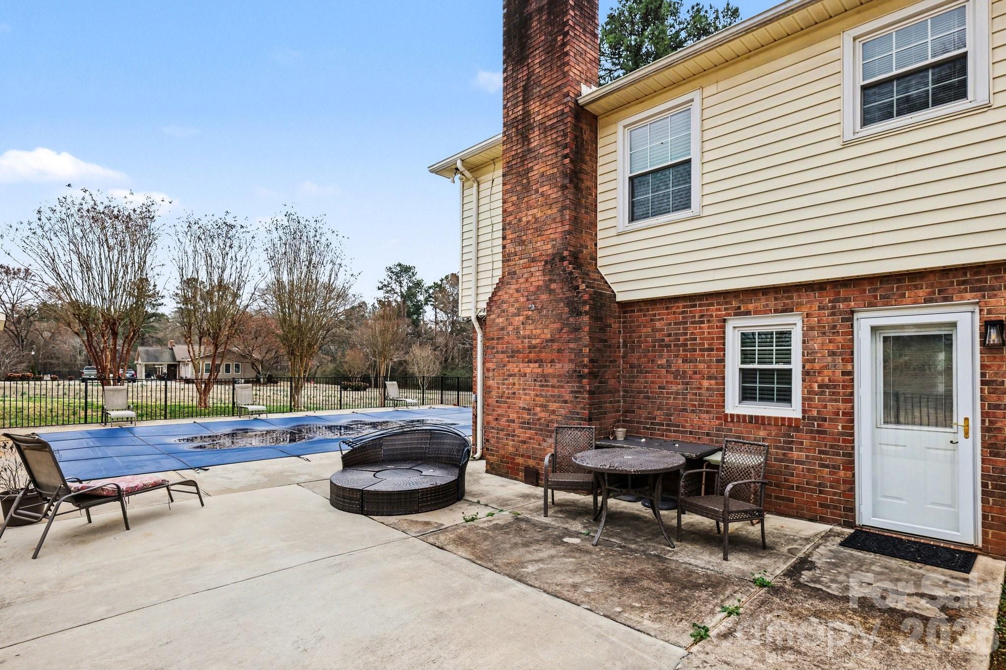Step outside to your private backyard retreat featuring a maintained in-ground pool surrounded by fencing for safety and a pool house, just waiting on summer and someone to bring the grill.