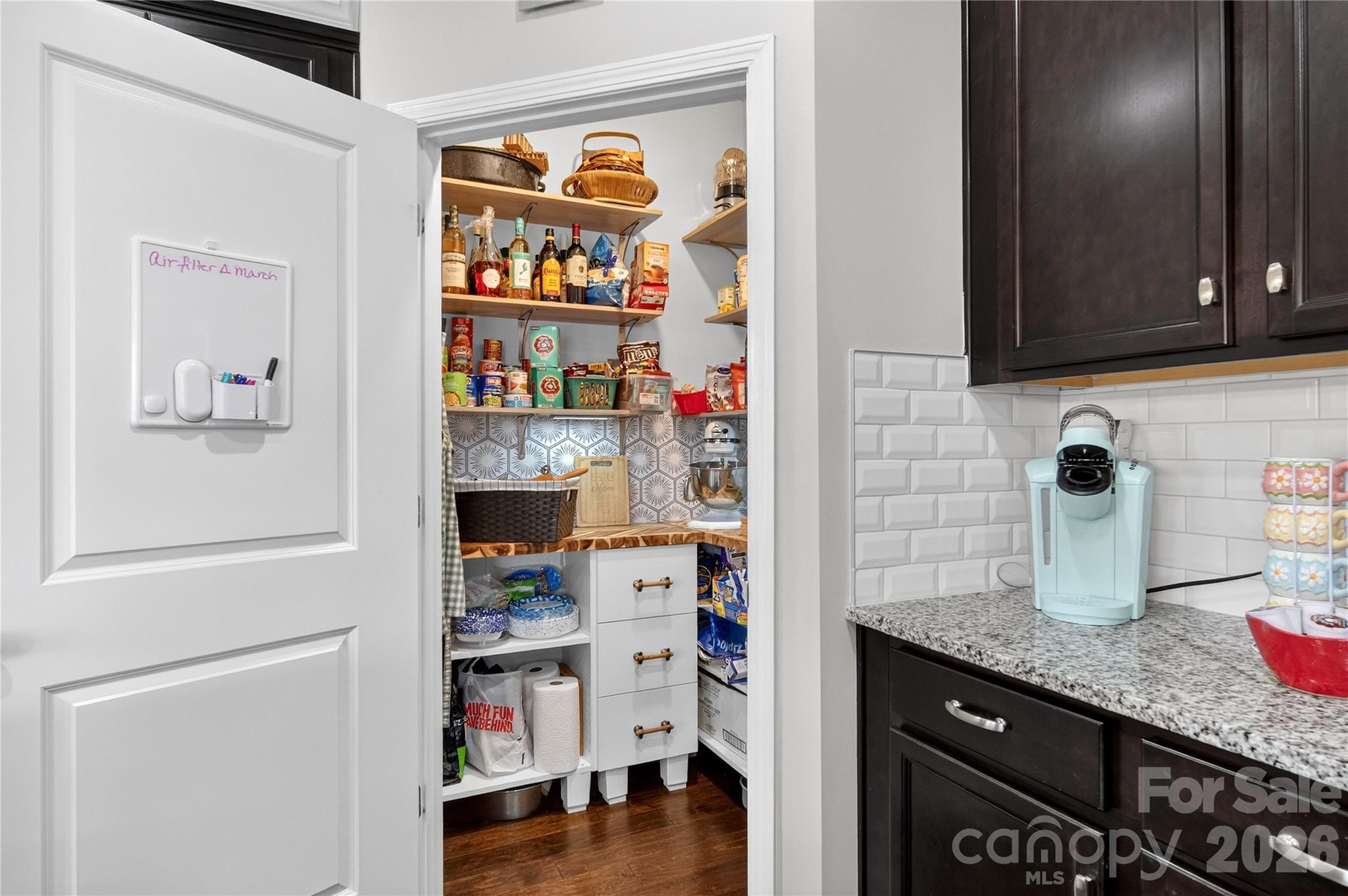 At the heart of the home, the kitchen impresses with a large island with seating, a stunning custom-designed walk-in pantry with built-in storage, and a laundry room just off the kitchen complete with a utility sink. Hardwood floors flow throughout the main living areas, and the inviting fireplace creates the perfect gathering space for cozy evenings.