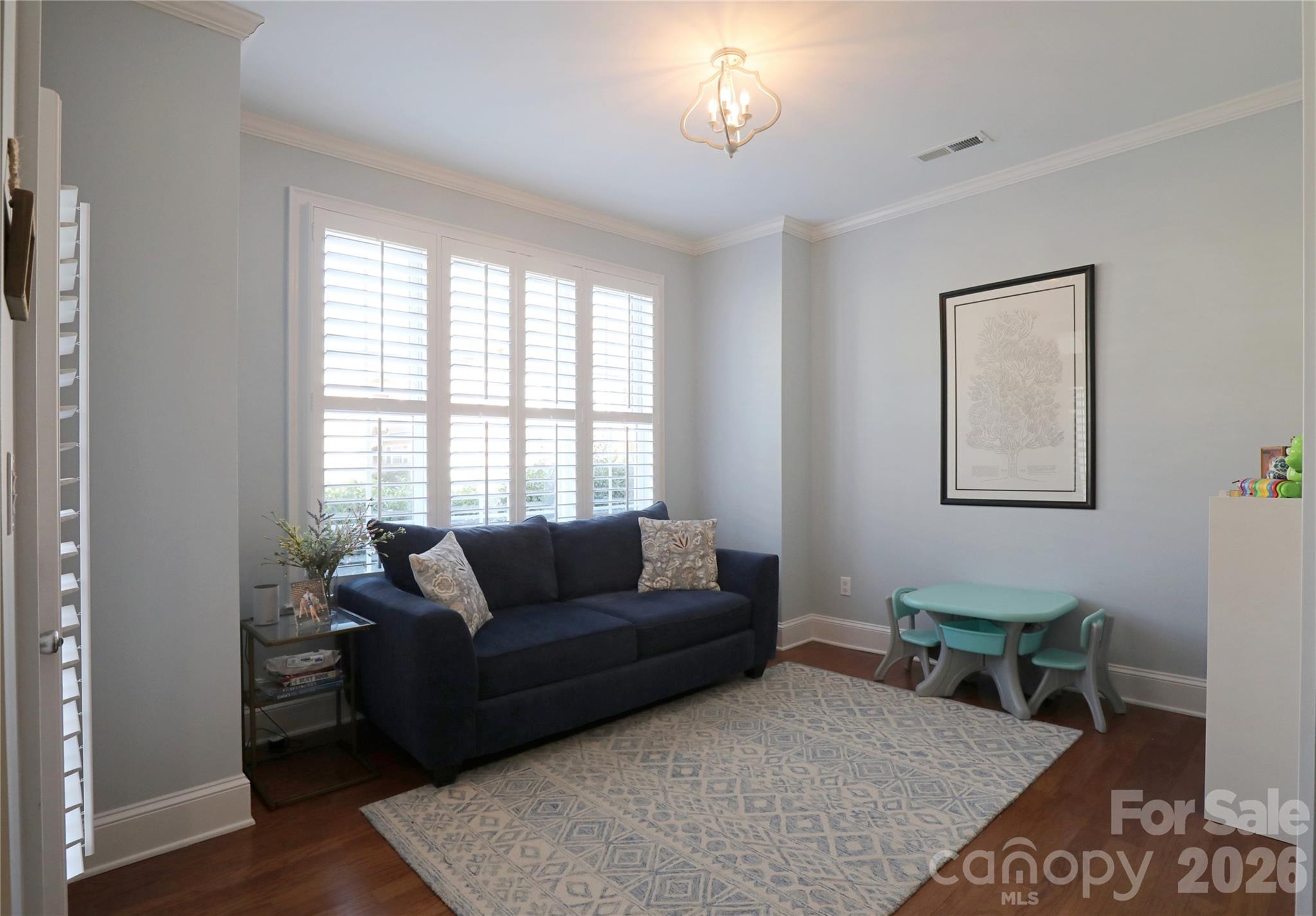 Tucked in the gated community of The Gates at Bridgehampton, a full-brick executive townhome on a corner lot in a prime location in Ballantyne. A well designed John Wieland floorplan, the home offers built-ins and custom features throughout. Enjoy a well-appointed luxury kitchen with granite counters, stainless appliances (oven/microwave replaced 2024), and generous island. Sitting room off kitchen is perfect flex space for a variety of uses - from breakfast room to office to sitting room - you choose! Hardwoods throughout main level and 2nd level except for in full bathrooms. Primary suite with trey ceiling, built-in shelving, custom closet organizers, and private balcony, offering a perfect retreat. Bright and spacious primary bath enjoys two oversized vanities, garden tub, walk-in shower, and private water closet. Secondary bedrooms share a hall bathroom with private vanity and ensuite access for one of the bedrooms. Landing leading to third level overlooks great room with built-in bookcases. Third level bonus room is massive with vaulted ceilings and is pre-plumbed for a wetbar/kitchenette! Don't miss the walk-in attic! SO many possibilities! Plantation shutters in all windows except middle bedroom and 3rd bonus/bedroom. Fenced tiled patio enjoys privacy and mature landscaping. Two car garage comes with built-in shelving and utility sink. Don't miss the abundance of amenities offered by Bridgehampton. Townhome is included in larger Bridgehampton neighborhood and has access to it all: Neighborhood Clubhouse, Fitness Center, Swimming Pool with Water Slide and Splash Pad, Tennis and Pickleball Courts, Sand Volleyball Court, Small Soccer Field, Playground, Hiking Trails, and Social Activities! Walk to Elon Park Elementary!