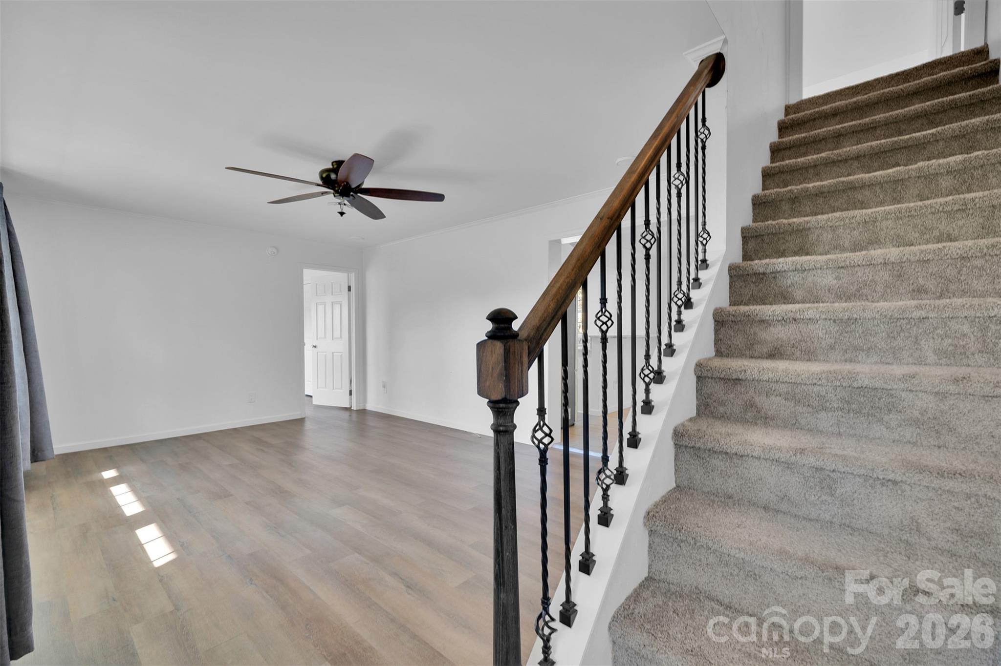 Recent updates provide peace of mind and modern comfort, including a fully encapsulated crawlspace, brand-new HVAC system, new carpet throughout, fresh interior paint, updated stair railings, and stylish new lighting and ceiling fans.