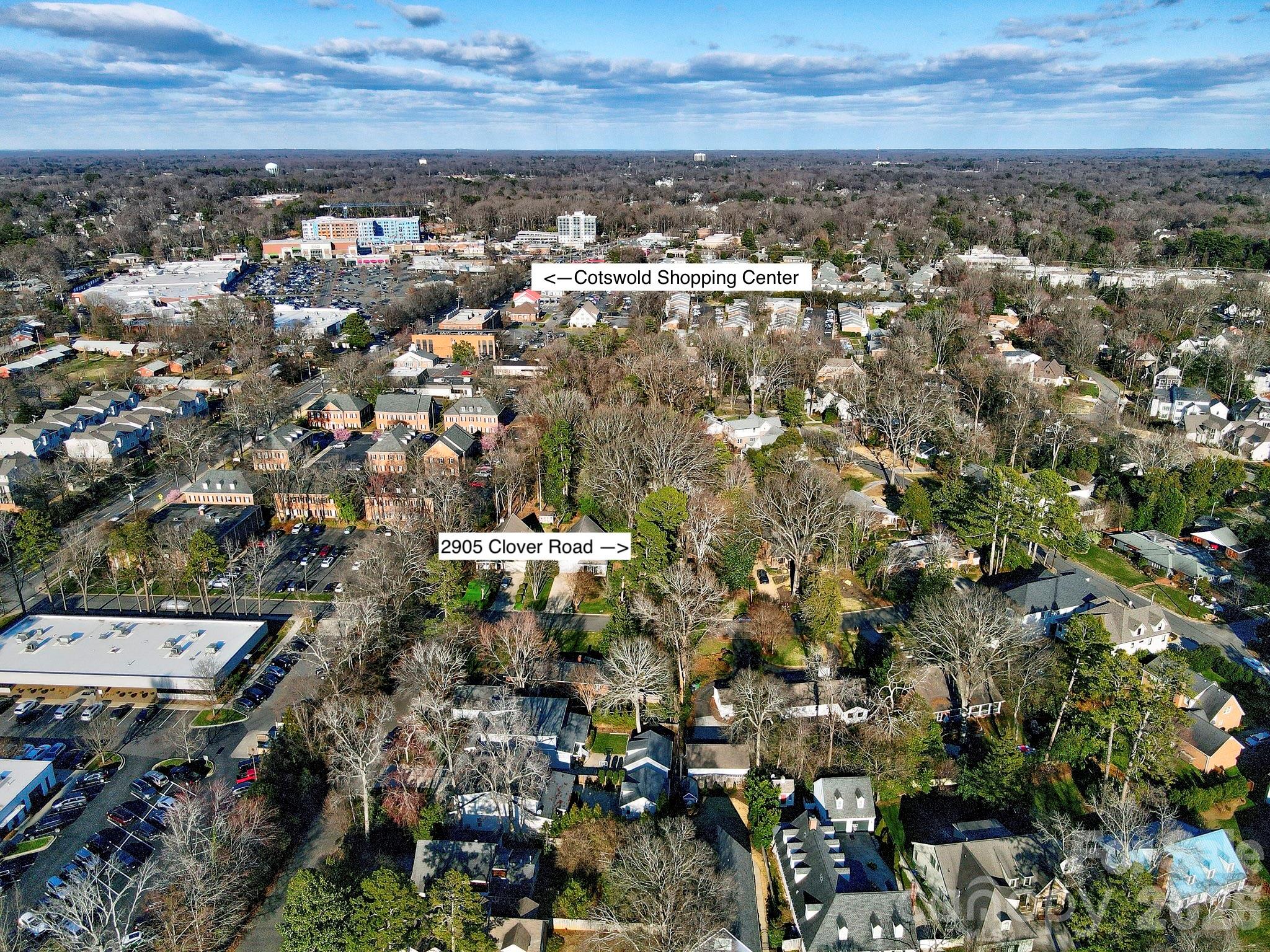 The expanded and updated cottage you’ve been waiting for in Cotswold/Providence Park. Situated on a picturesque 0.59-acre lot, 2905 Clover Road exudes charm and character. The original brick construction delivers timeless curb appeal, while a thoughtful addition includes a must-see three-car garage/shop. Inside, the living room is anchored by a barnwood-wrapped fireplace and flows seamlessly into the dining room/second living area. The kitchen features a gas cooktop, double ovens, granite countertops, a checkerboard hardwood floor, and a pantry with a farmhouse-style door. A flex space off the main living area makes the perfect home office or study. The expansive primary suite boasts a tray ceiling, French doors to the covered back porch, dual walk-in closets, and a luxurious bath with a double vanity with copper sinks, a soaking tub, and a zero-entry shower. Heated floors just outside the shower provide ultimate comfort. Two additional bedrooms are located at the front of the home, both with updated baths, including one en-suite. A covered breezeway leads to a back deck and courtyard with a fountain, as well as to the impressive garage. With two-car access from the front and a single bay at the rear, it offers 972 square feet of usable workspace, complete with a car lift. All of this in an incredible location, just an easy stroll to countless restaurants and Cotswold Shopping Center. Welcome home!