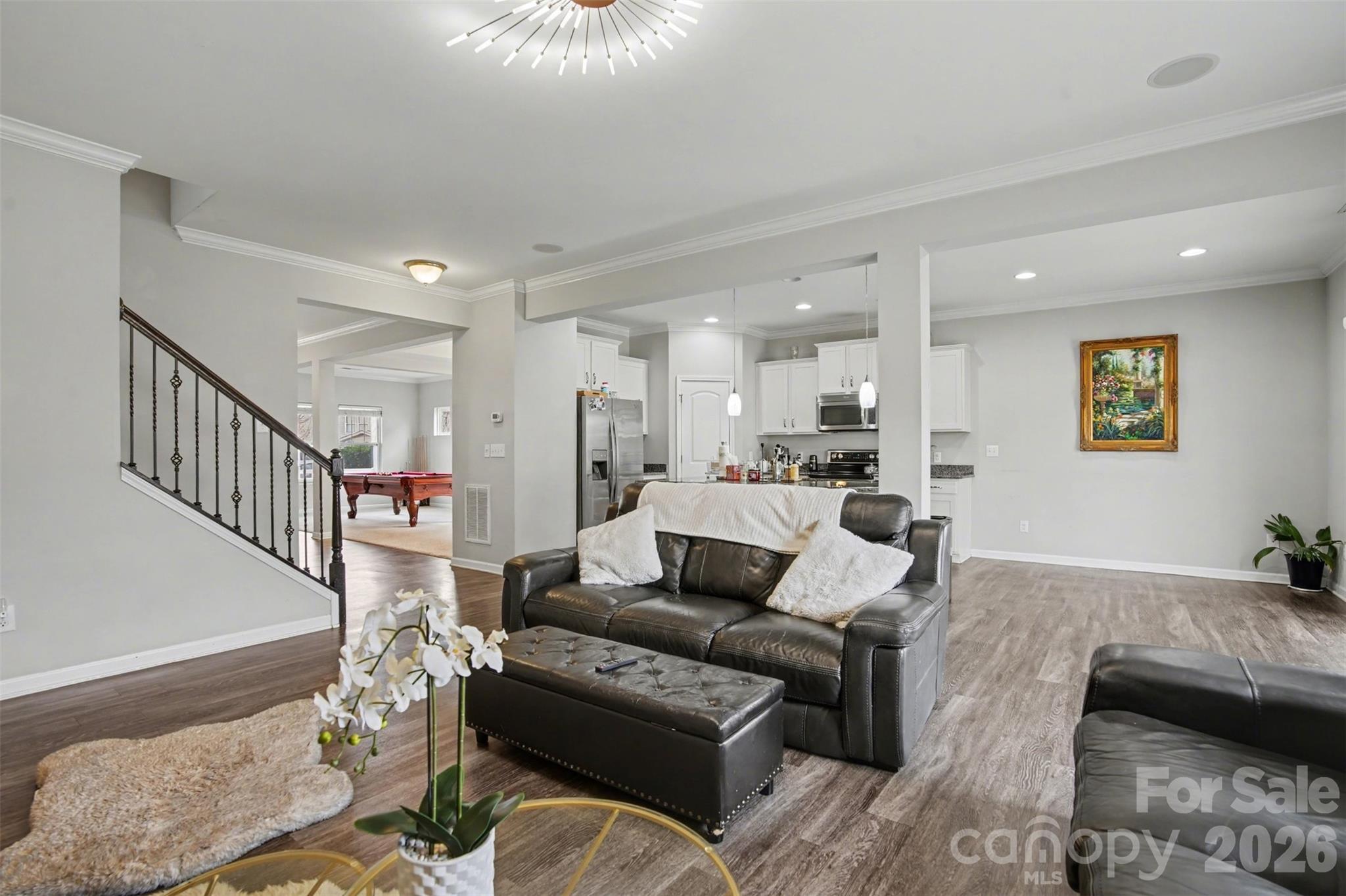 Welcome to a beautifully maintained home that truly has it all. Built in 2014 and thoughtfully cared for, this spacious 5 bedroom, 4bathroom home offers the perfect blend of comfort, functionality, and style. From the moment you walk in, you’ll notice the natural light filling the home and the inviting layout. The main level features a formal sitting room and dining room, perfect for gatherings or quiet evenings at home. The open concept living area flows seamlessly into the kitchen and breakfast area, creating a great space for everyday living and entertaining. The living room fireplace adds a cozy touch and makes the space feel warm and welcoming. The kitchen overlooks the main living area and breakfast space, making it easy to stay connected with family and guests while cooking or hosting. Upstairs, the spacious primary suite offers a peaceful retreat with a tray ceiling and plenty of room to relax and unwind. The home’s five bedrooms and four full bathrooms provide flexibility for families, guests, or a home office setup. Throughout the home you’ll find beautiful crown molding in many of the rooms, adding a classic and elegant touch. This home is also equipped with thoughtful upgrades that today’s buyers appreciate. A built-in in-wall surround sound system runs throughout the house, perfect for music, movie nights, or entertaining. The property also includes a 3 camera security system with window sensors and a convenient touchpad control system for added peace of mind. A keypad lock provides easy and secure entry. Step outside to enjoy the fenced backyard, offering privacy and plenty of space to relax, play, or entertain. This home has been very well maintained and is move-in ready, offering both space and modern features in a comfortable and inviting setting. It is also located just 3 minutes away from a public park and a hiking trail.