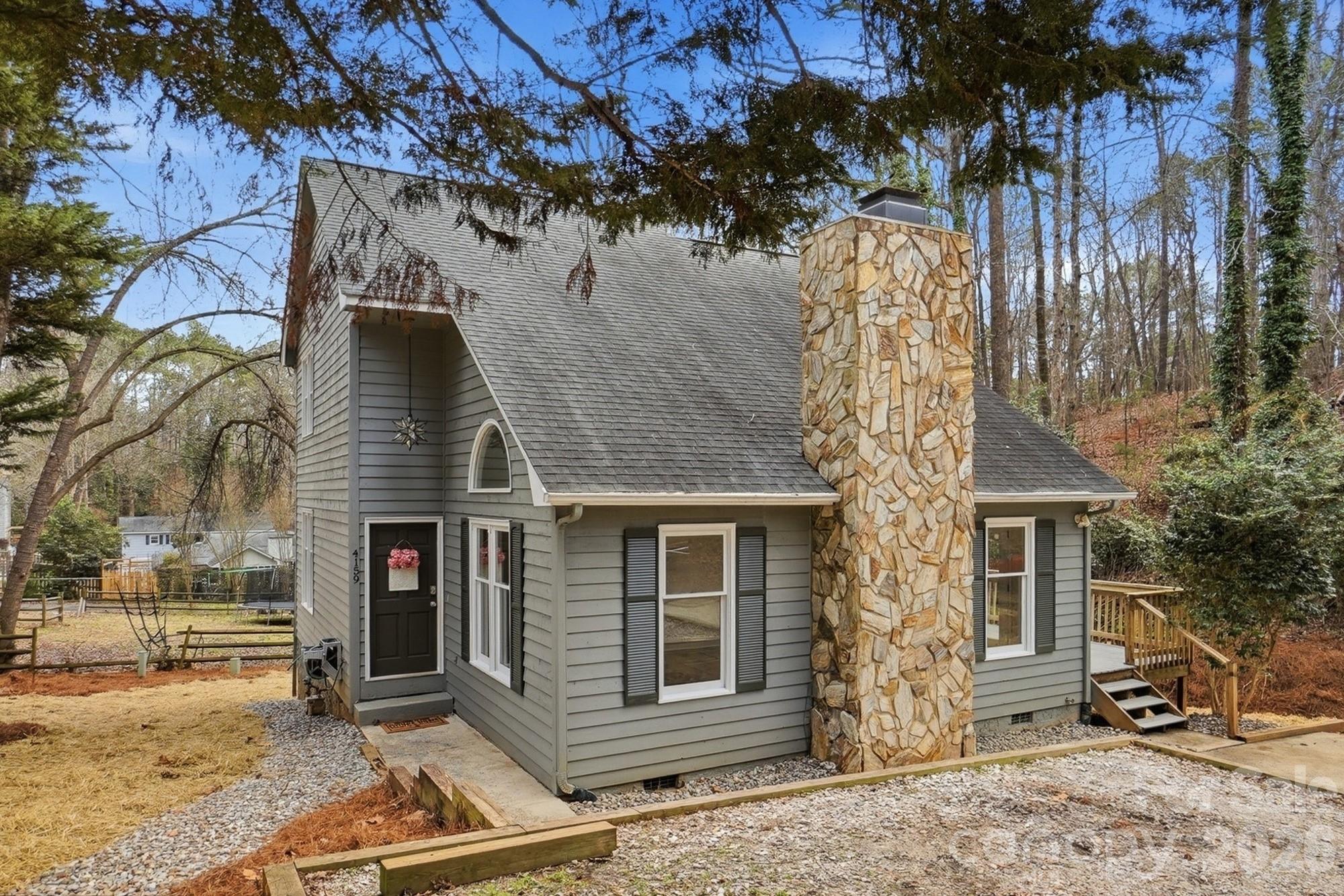 Tucked away at the end of a quiet street and backed by beautiful mature trees, this Tega Cay gem delivers the privacy you want with the charm you’ll instantly fall in love with. No rear neighbors. No through traffic. Just peaceful living in one of the area’s most desirable communities. Step inside and you’re greeted by soaring vaulted ceilings, abundant natural light, and a cozy fireplace that makes the living room feel like the heart of the home. The open flow into the dining area and kitchen creates the perfect setup for everyday living and easy entertaining. Granite countertops, freshly painted cabinets, new hardware, and updated light fixtures give the space a fresh, modern feel. The flexible layout is a standout feature — a main-level bedroom offers convenience and versatility, while upstairs you’ll find two additional bedrooms with a shared bath. Need a primary suite on the main level? Done. Prefer it upstairs? That works too. This home adapts to your lifestyle. Outside, your private, tree-lined backyard becomes your own little retreat — an ideal setting for slow mornings, relaxing evenings, and effortless entertaining. With new carpet, fresh paint throughout, updated finishes, and all appliances conveying, this home is truly move-in ready. Cozy, inviting, and full of character!