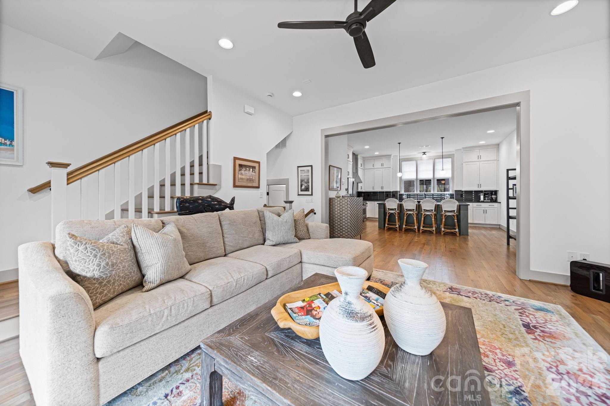 Beautifully crafted new townhome offering modern luxury in the heart of Elizabeth. This thoughtfully designed residence features an open-concept main level with 10-foot ceilings and hardwood floors throughout the living areas, creating a bright and inviting atmosphere. The chef’s kitchen is a true centerpiece, showcasing a 36” dual-fuel range, white stacked cabinetry, a striking jade-green island, quartz countertops, and a stylish 3x12 charcoal tile backsplash—perfect for both everyday living and entertaining. Upstairs, the spacious owner’s suite offers a serene retreat with a spa-inspired bathroom featuring a frameless glass shower, dual vanities, and a generous walk-in closet with custom site-built shelving. The secondary upstairs bedroom includes its own private full bathroom, ideal for guests or a home office setup. The lower level provides additional flexibility with a third bedroom, full bath, and direct access to the two-car garage. Step outside to the patio featuring $5,000 custom installed privacy shade. Living in Elizabeth means easy access to South End’s light rail, the bustling energy of Uptown, green space along the Little Sugar Creek Greenway, and some of Charlotte’s most beloved restaurants and shops—all just minutes away.